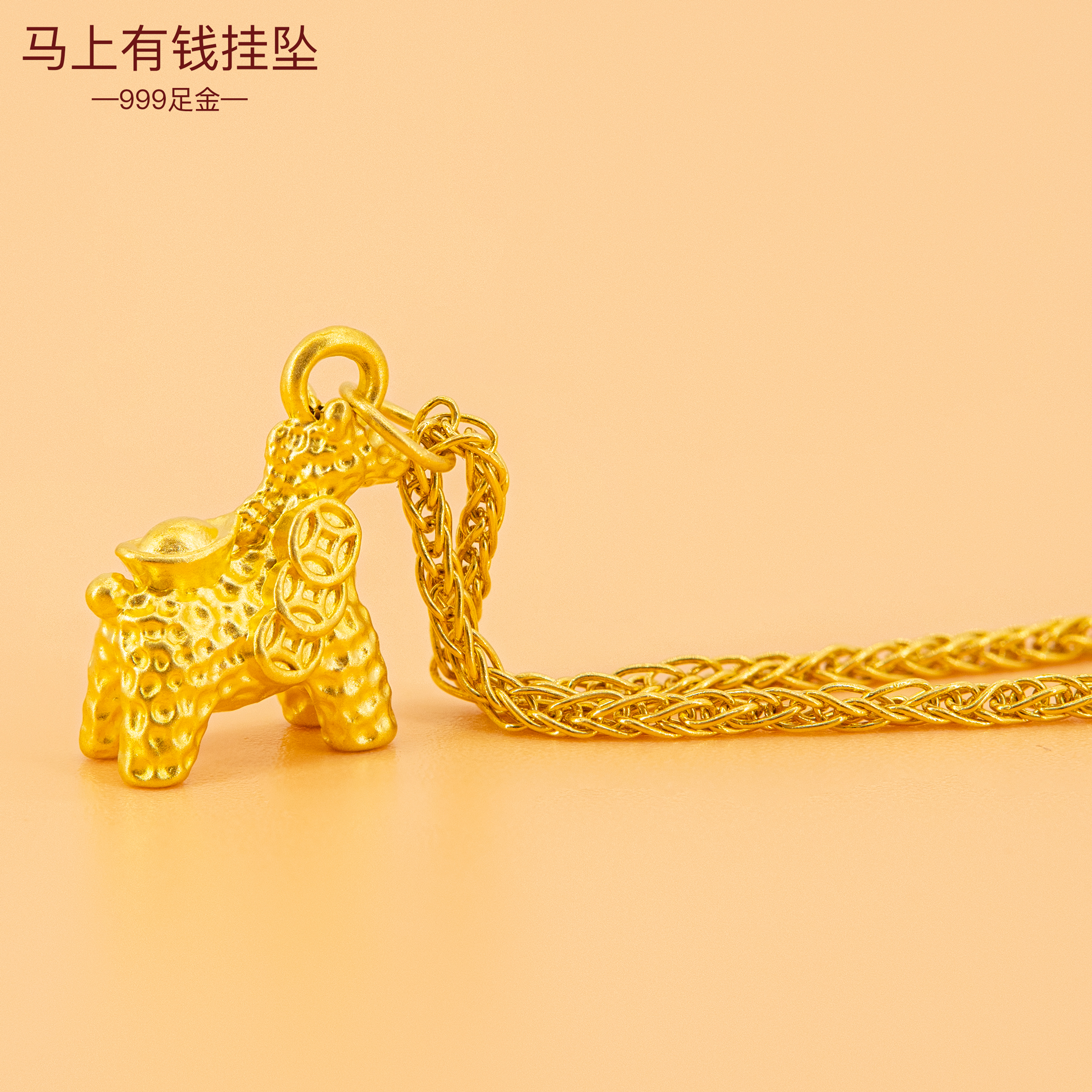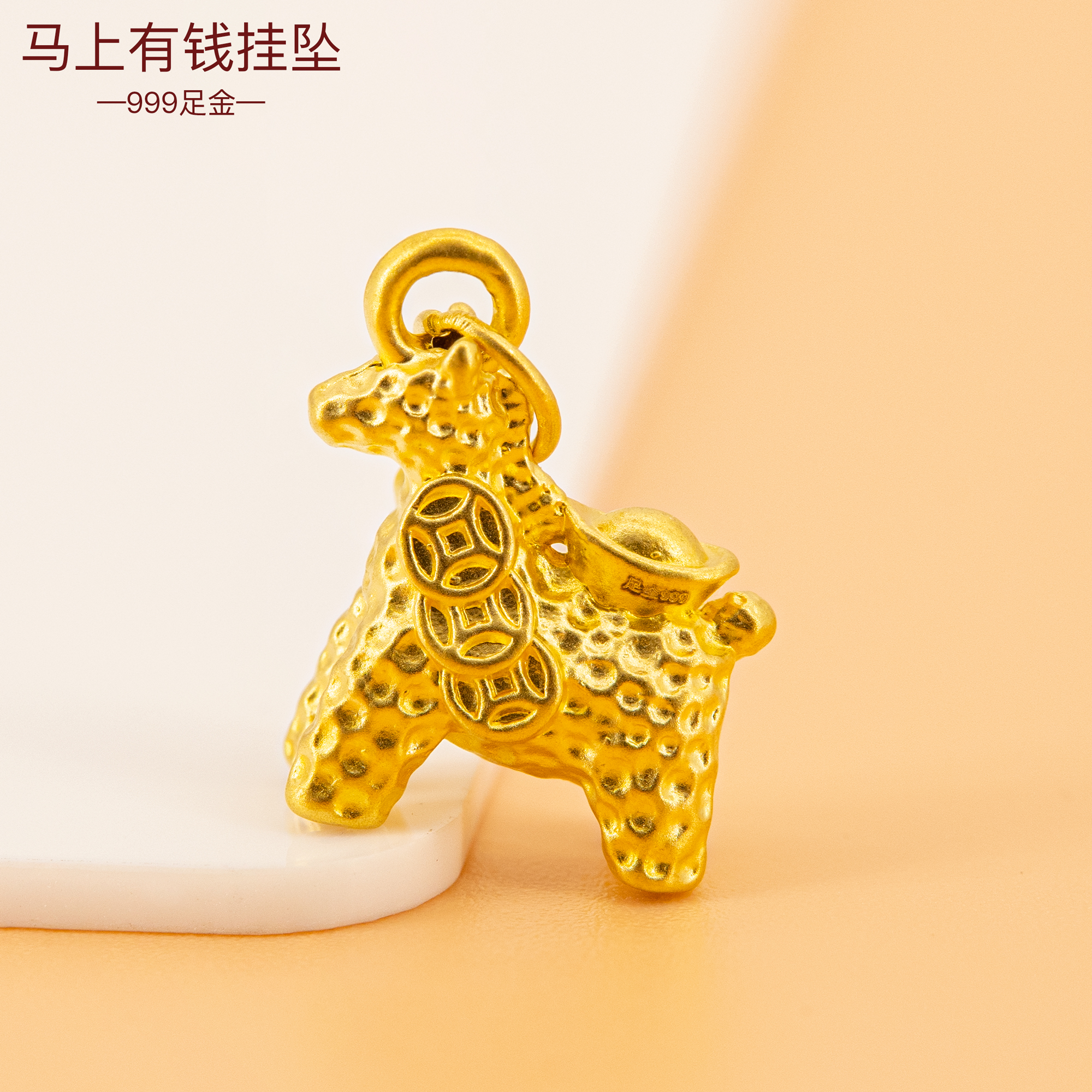 足金999马上有钱黄金吊坠3D硬金手链配饰diy纯金小马挂坠手绳挂件