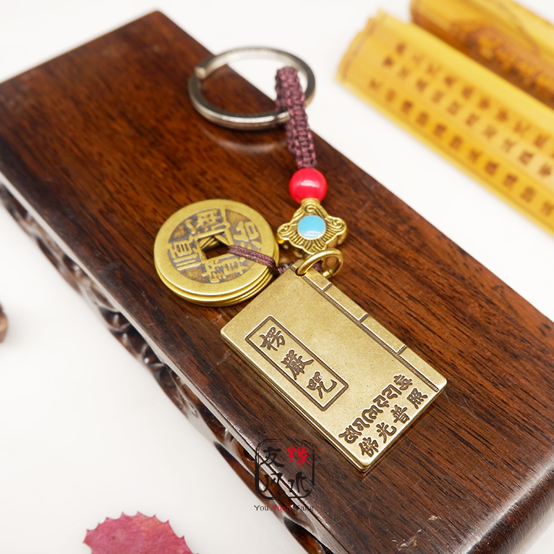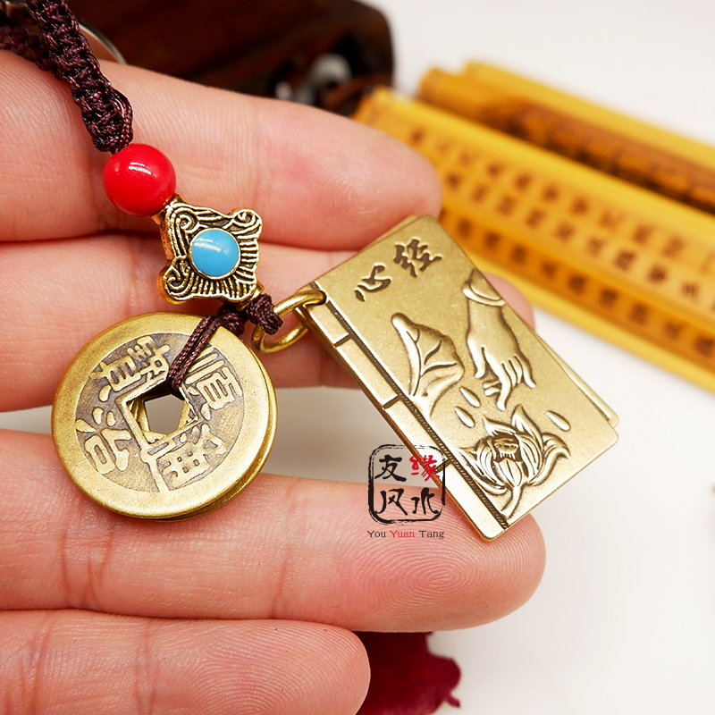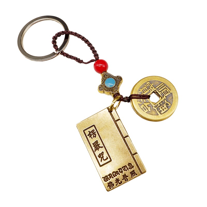 纯铜楞严咒大悲咒心经五帝钱钥匙扣汽车吊坠平安挂件擋煞随身携带