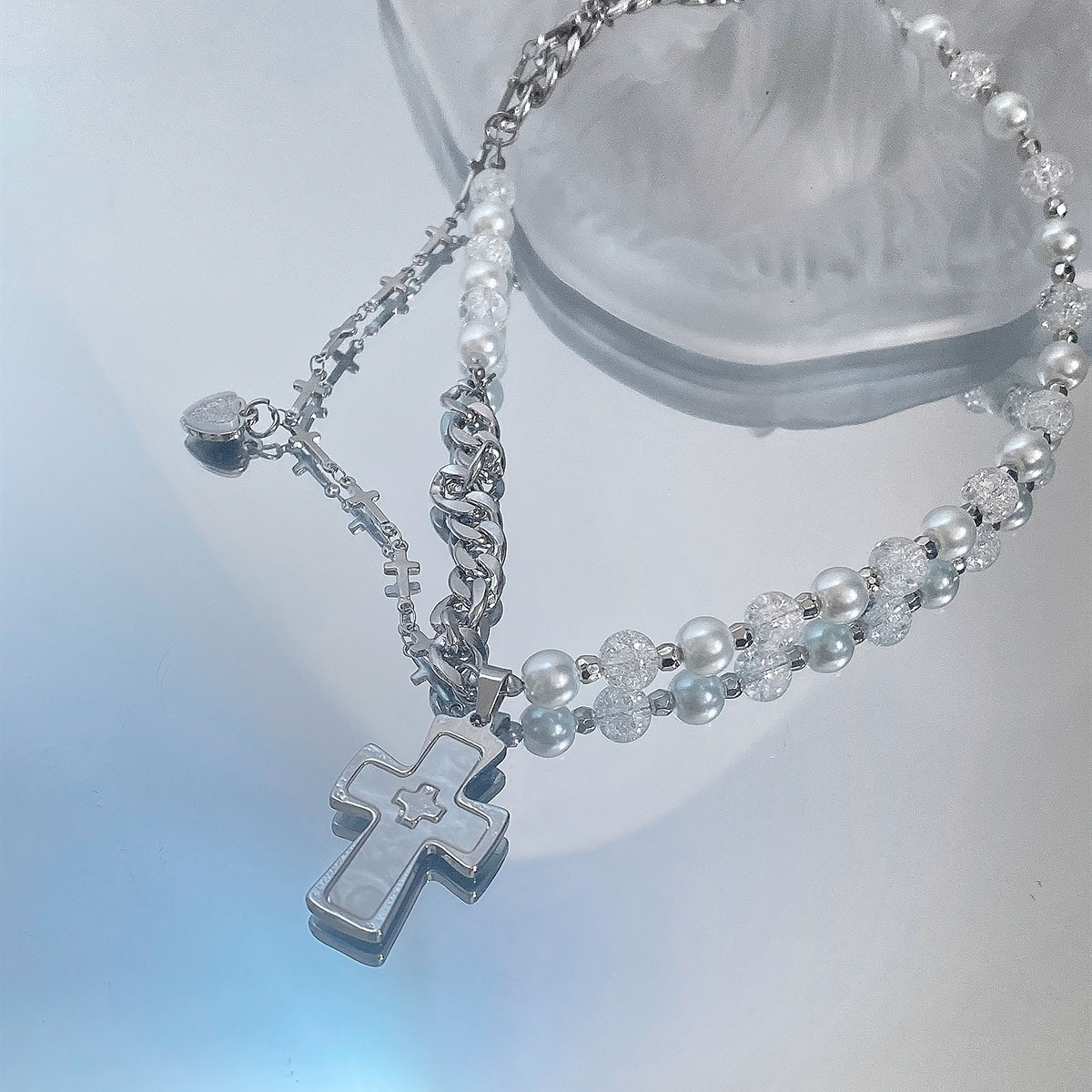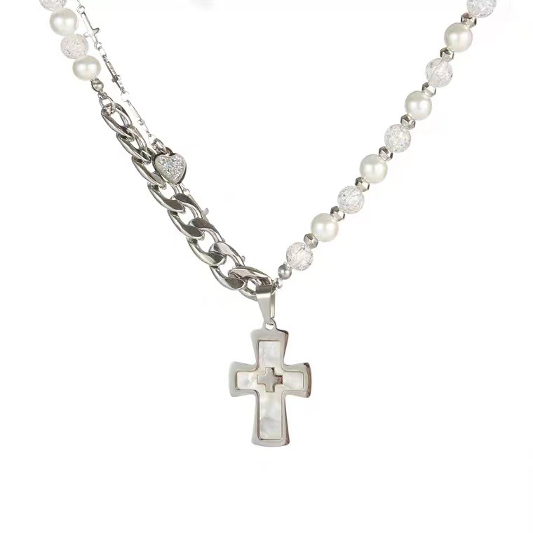 十字架珍珠项链女锁骨链网红甜酷轻奢小众设计高级感2025年新款潮