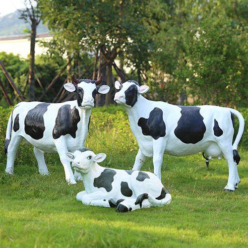 户外园林农场牧场仿真奶牛雕塑草坪小区大型玻璃钢动物牛模型摆件