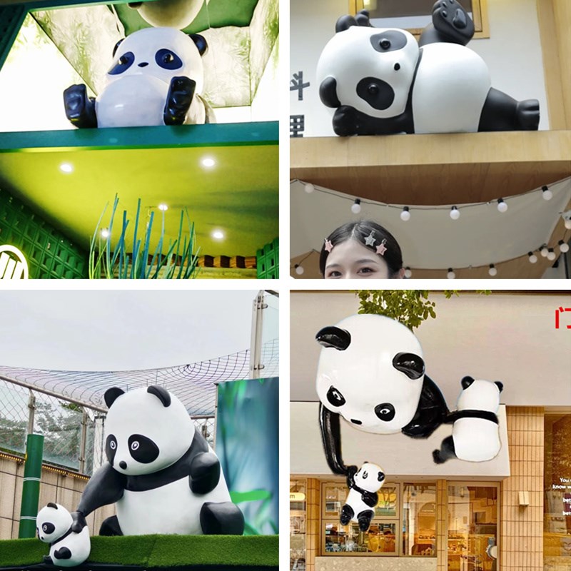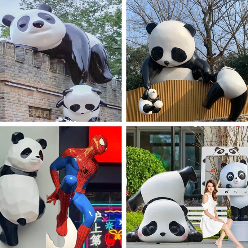 户外门头网红店爬墙打卡熊猫x装饰玻璃钢雕塑商场壁挂蜘蛛侠大摆