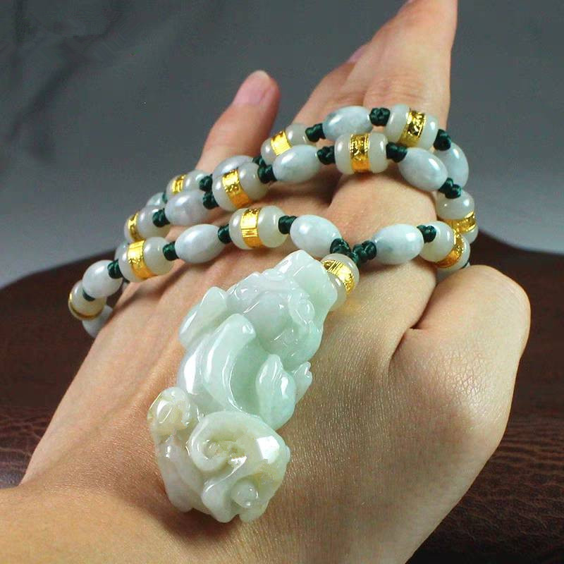 黄金转运珠貔貅项链金镶玉项链男款和田玉999足金路路通项链挂绳