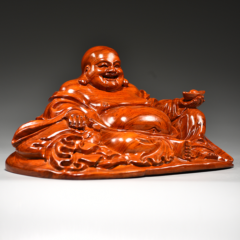 花梨木雕弥勒佛像摆件实木元宝布袋坐笑佛红木工艺品客厅玄关装饰