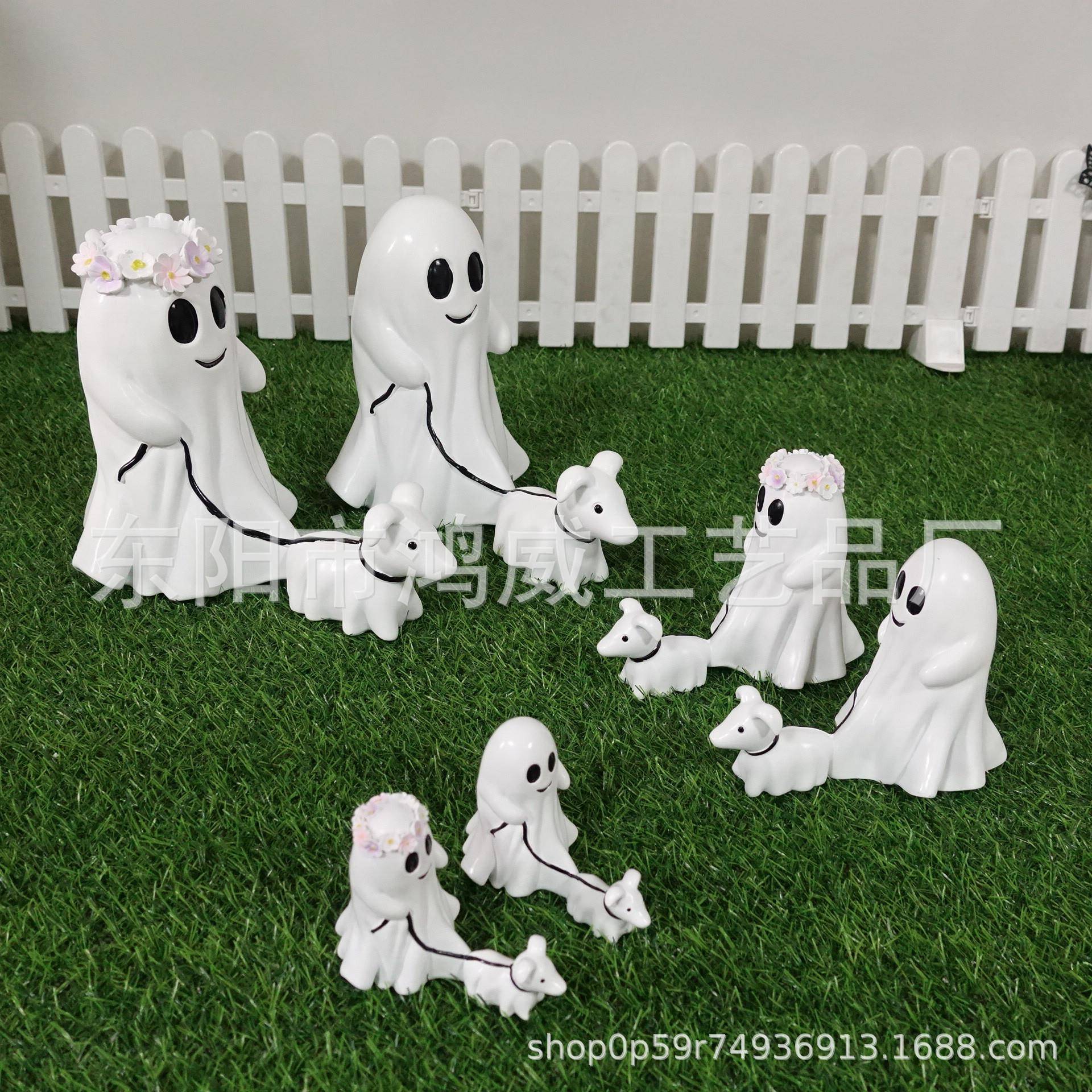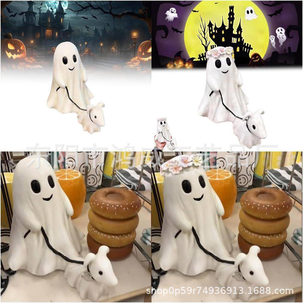 万圣节创意遛狗摆件万圣节创意书桌装饰,可爱小幽灵遛狗装饰摆件