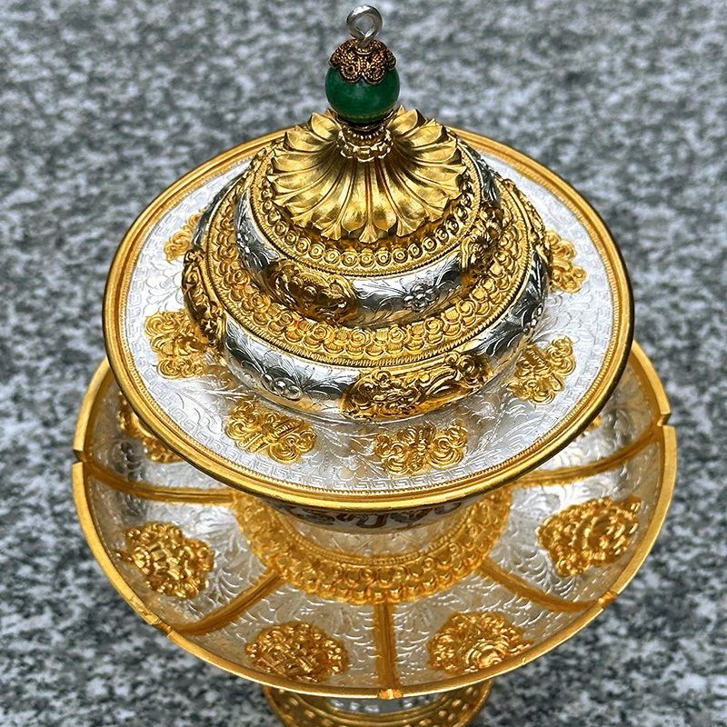 尼泊尔上师茶架纯银鎏金景德茶杯套装喝茶碗盖碗茶杯供养上师供杯