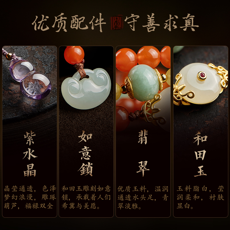 老蜜蜡吊坠女款毛衣链天然南红玛瑙平安扣翡翠和田玉琥珀复古项链