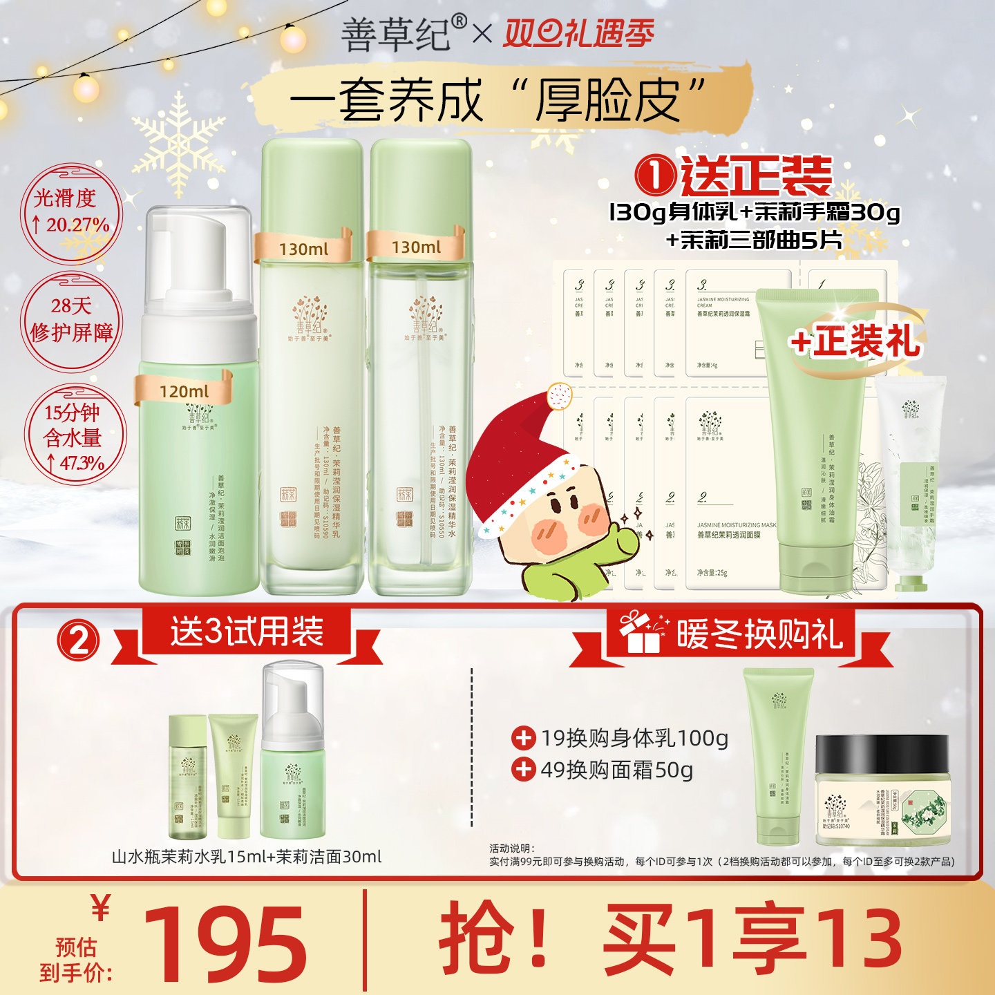 [圣诞礼物]善草纪茉莉小轩窗礼盒干皮水乳补水保湿修护舒缓护肤品