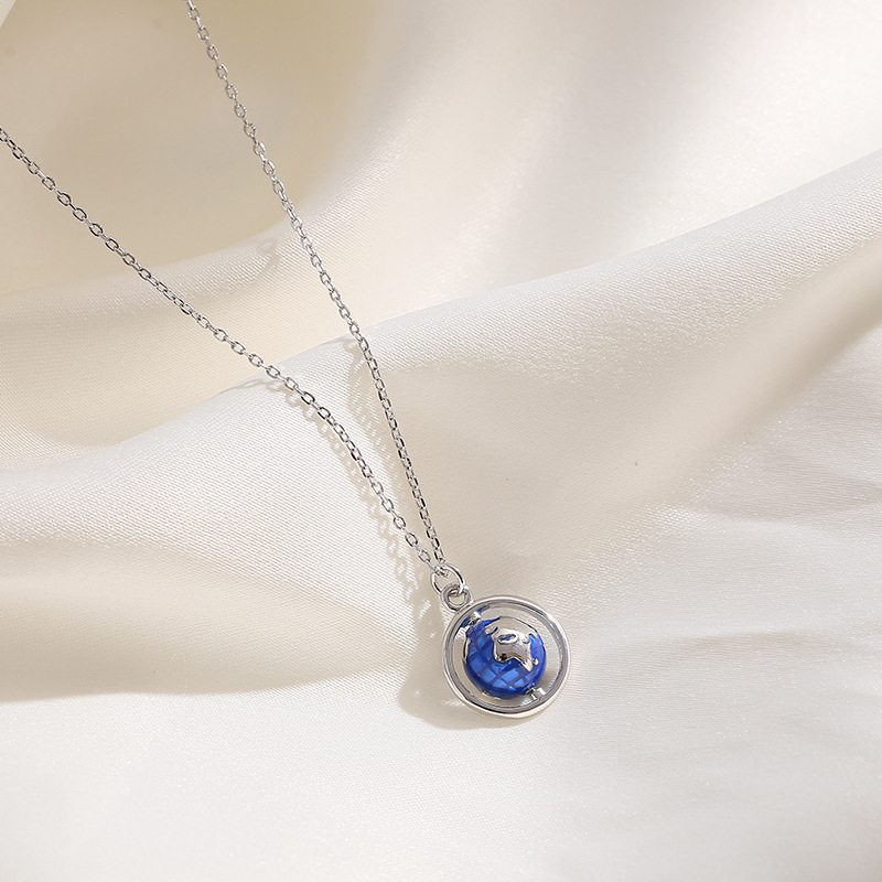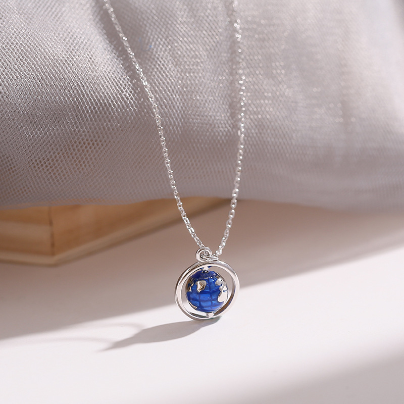 新款925纯银地球仪星球项链女 ins简约百搭小众设计感个性锁骨链