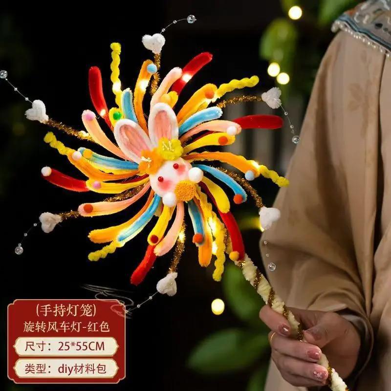 中秋节灯笼旋转风车发光灯笼扭扭棒手工diy材料儿童手提兔子花s
