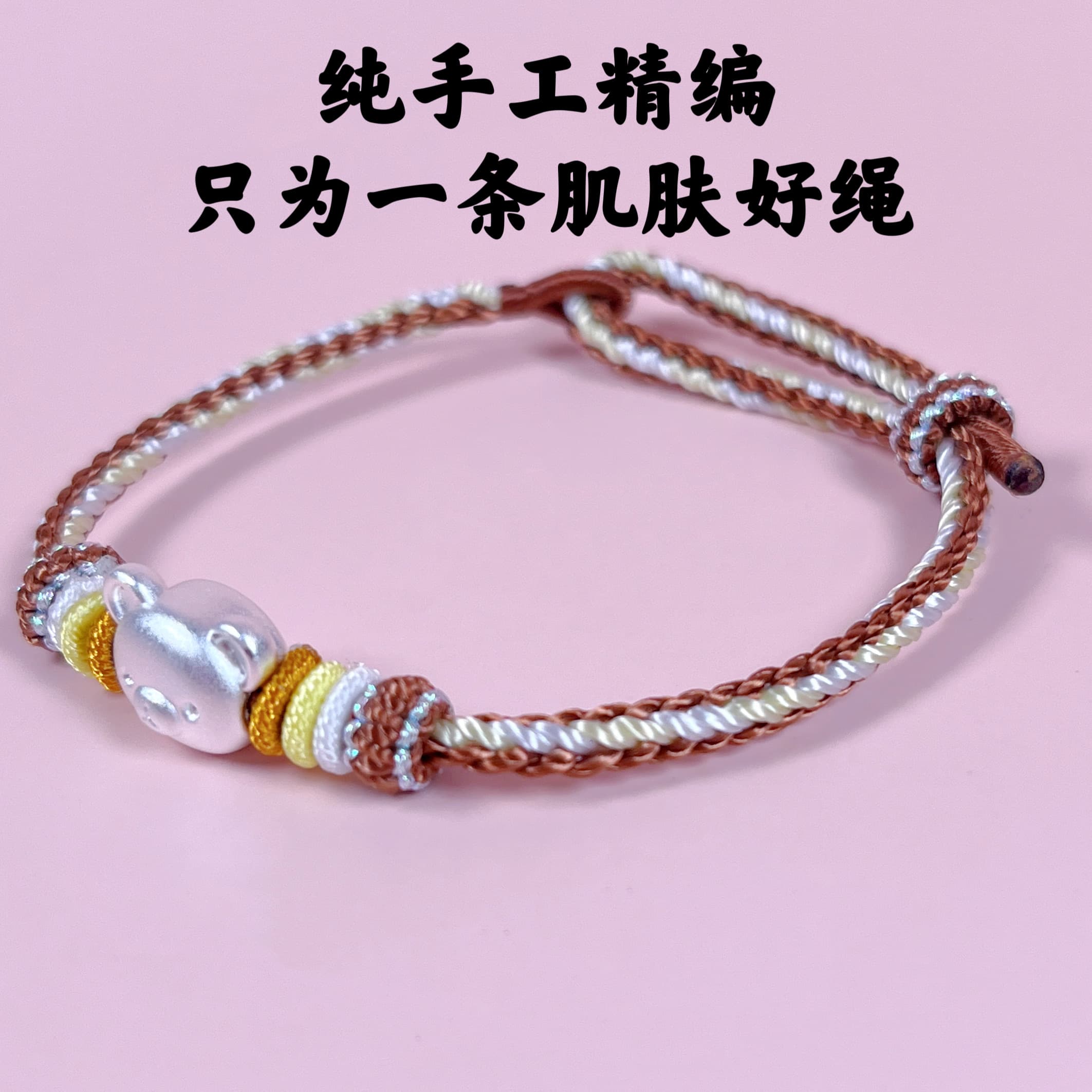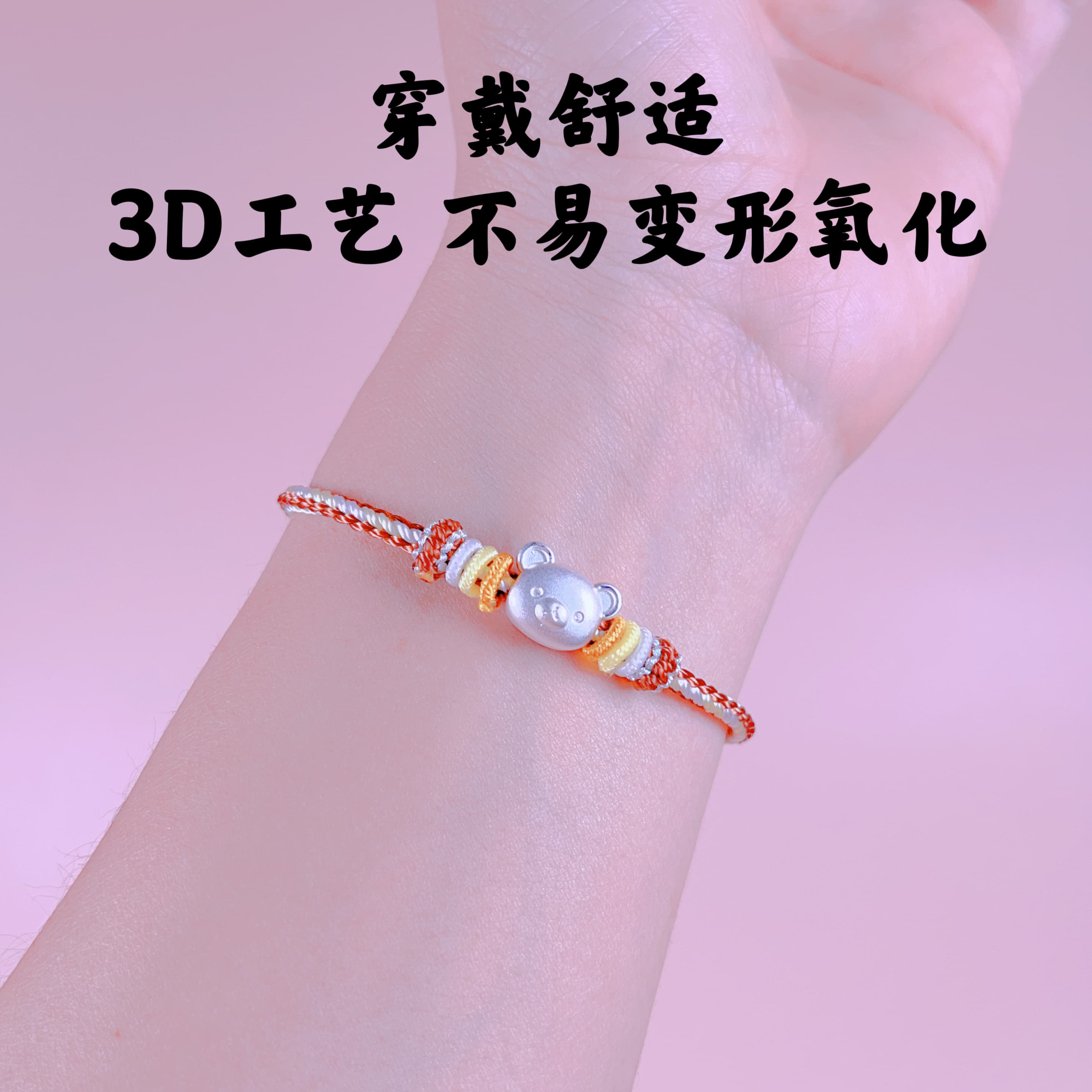 轻松熊足银999精编织手绳卡通纯银手链女送闺蜜儿童生日伴手礼物