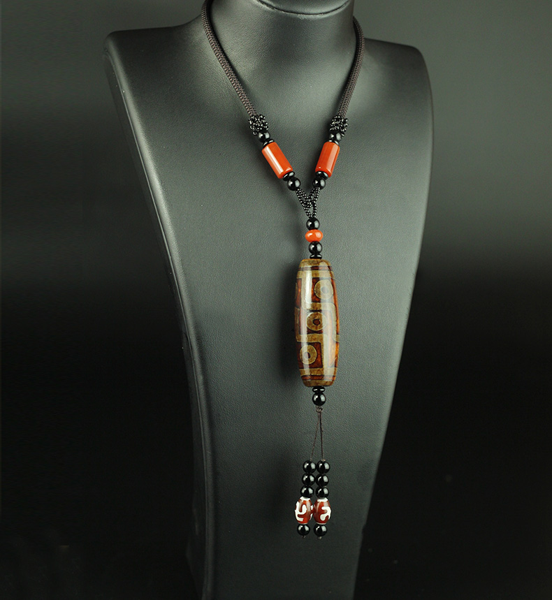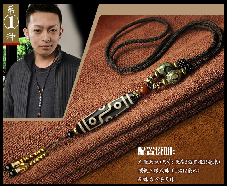 西藏九眼老天珠项链白菩提长款至纯天珠吊坠毛衣链锁骨项链珠链子