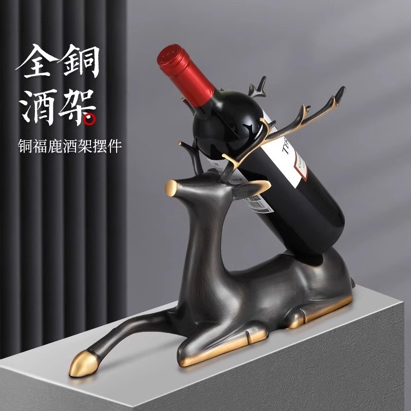 全黄铜鹿红酒架现代轻奢高档置物架客厅家用创意斜放酒柜装饰摆件