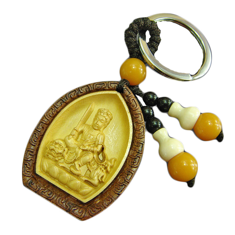 增庆堂2026属兔本命年黄杨木挂件文殊汽车钥匙扣饰品