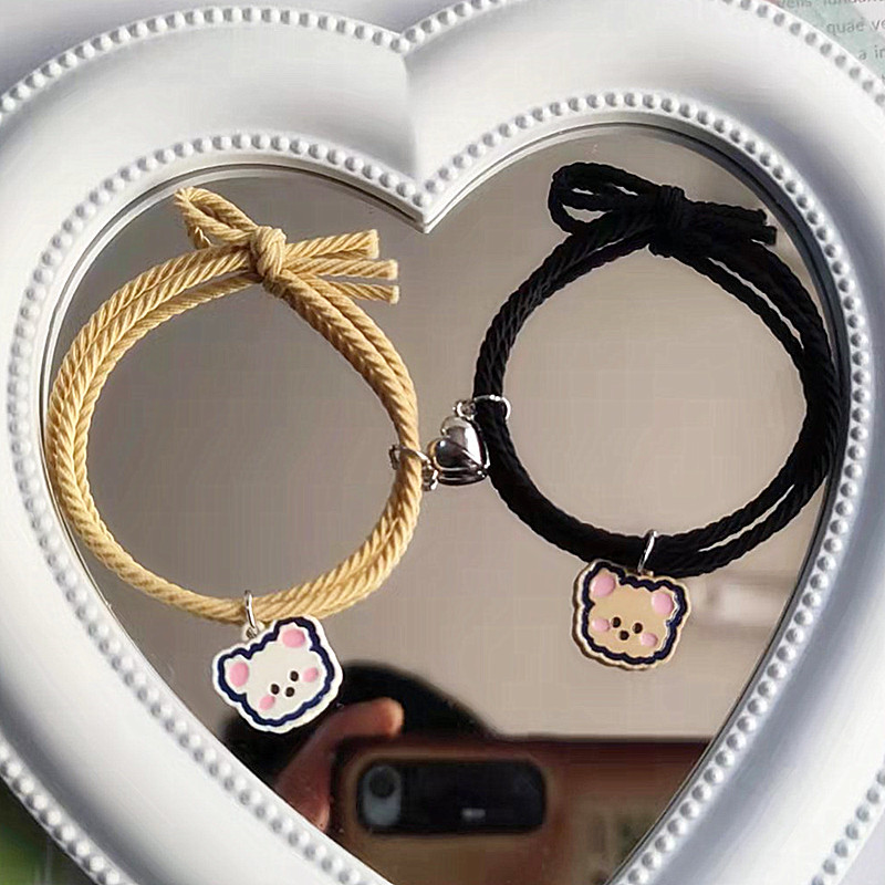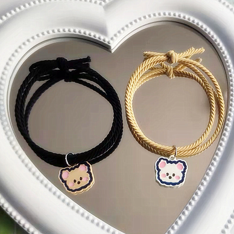 原创合金小熊情侣手链一对送男友ins网红闺蜜小皮筋手绳学生头绳