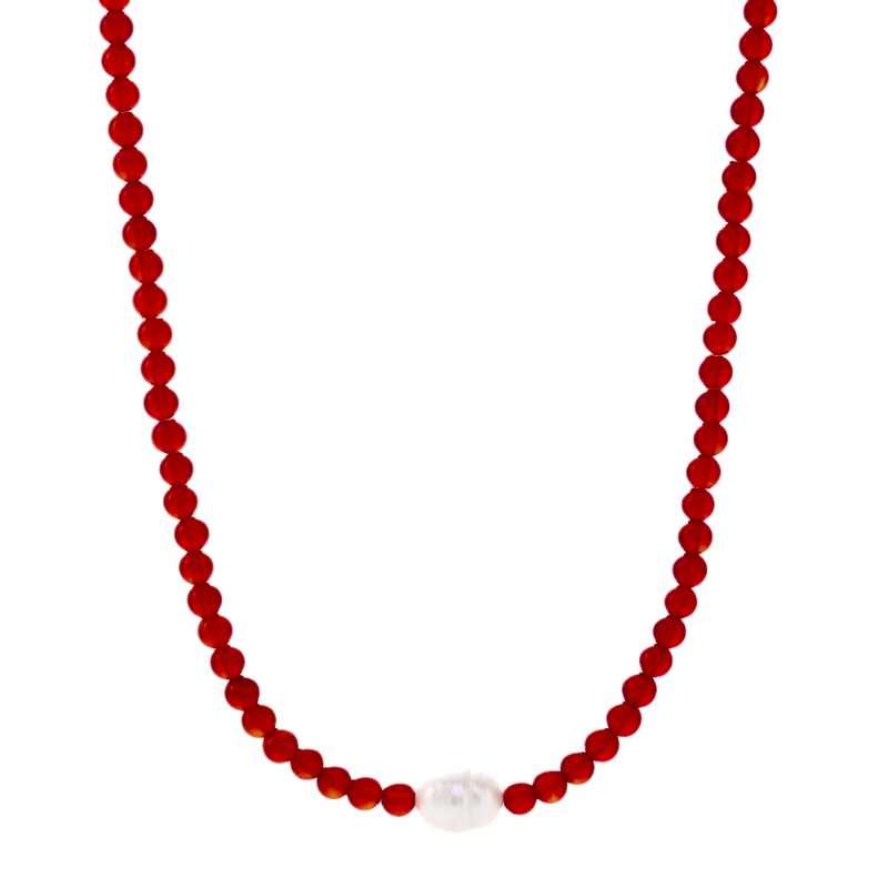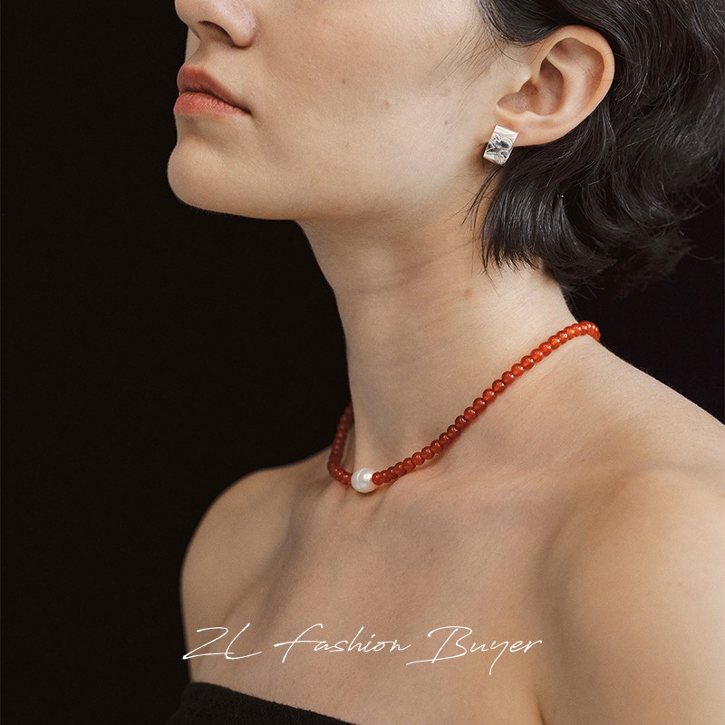 现货SOFT ROOM天然红玛瑙串珠天然珍珠项链本命年红色