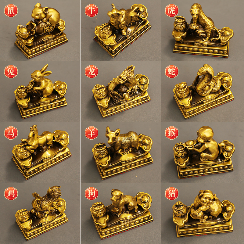 纯铜十二生肖摆件全套12属相鼠牛C虎兔龙蛇马羊猴鸡狗猪本命工艺