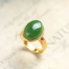 通体S925纯银镀金天然和田玉碧玉蛋面戒指铜钱国风气质开口女指环
