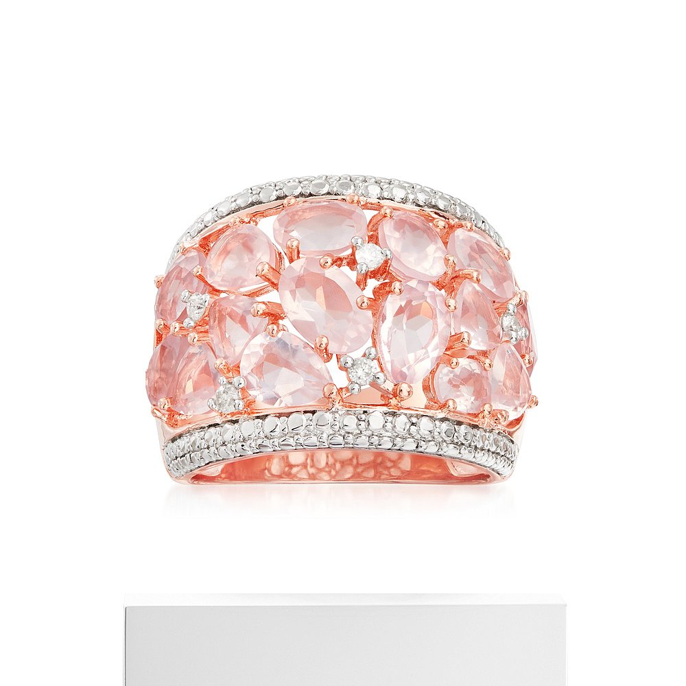 自营 Ross-Simons 玫瑰石英圆顶戒指 玫瑰 925 纯银镶钻 - 粉红色