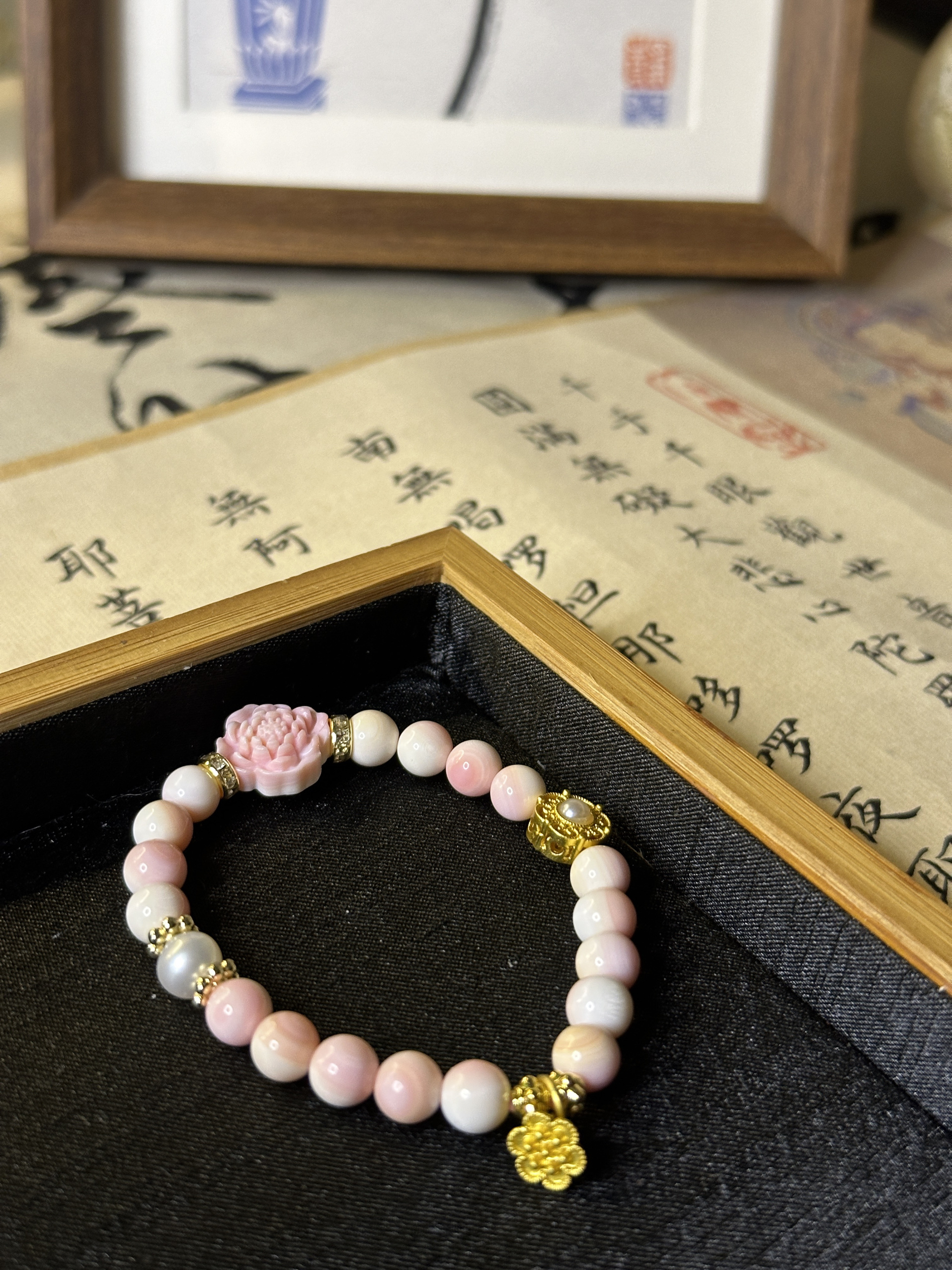 『墨初』原创手串「荷」天然女王贝雕刻荷花牌店主手编