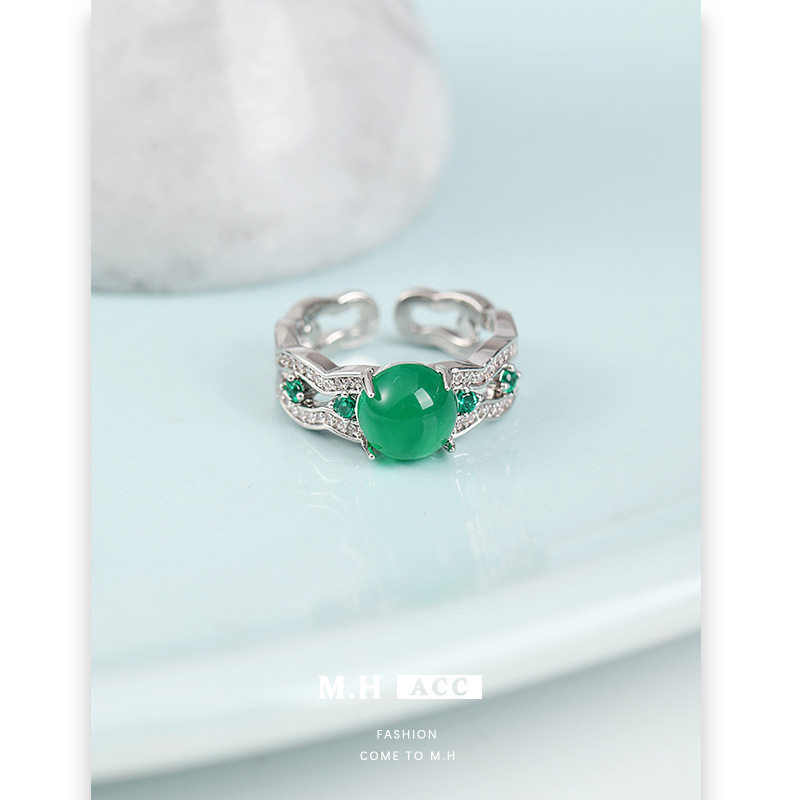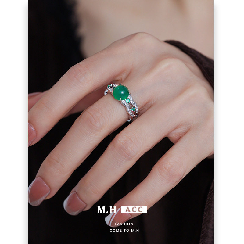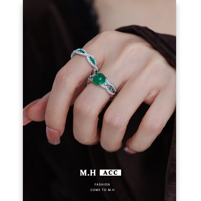 法式复古宫廷绿色锆石戒指女款奢华精致时尚气质百搭高级感食指戒