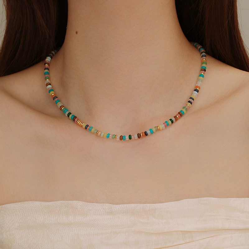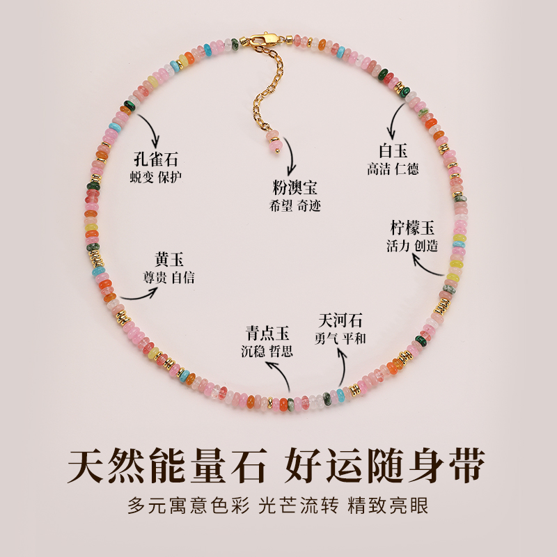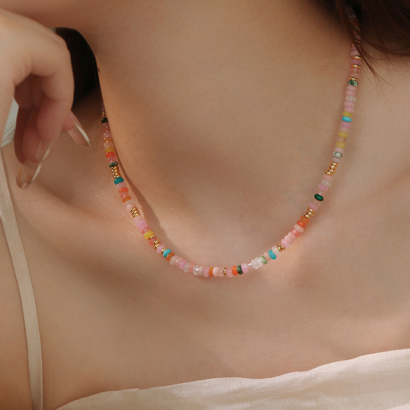 莫奈花园天然石串珠项链配饰女夏日多巴胺彩色项链ins风轻奢小众