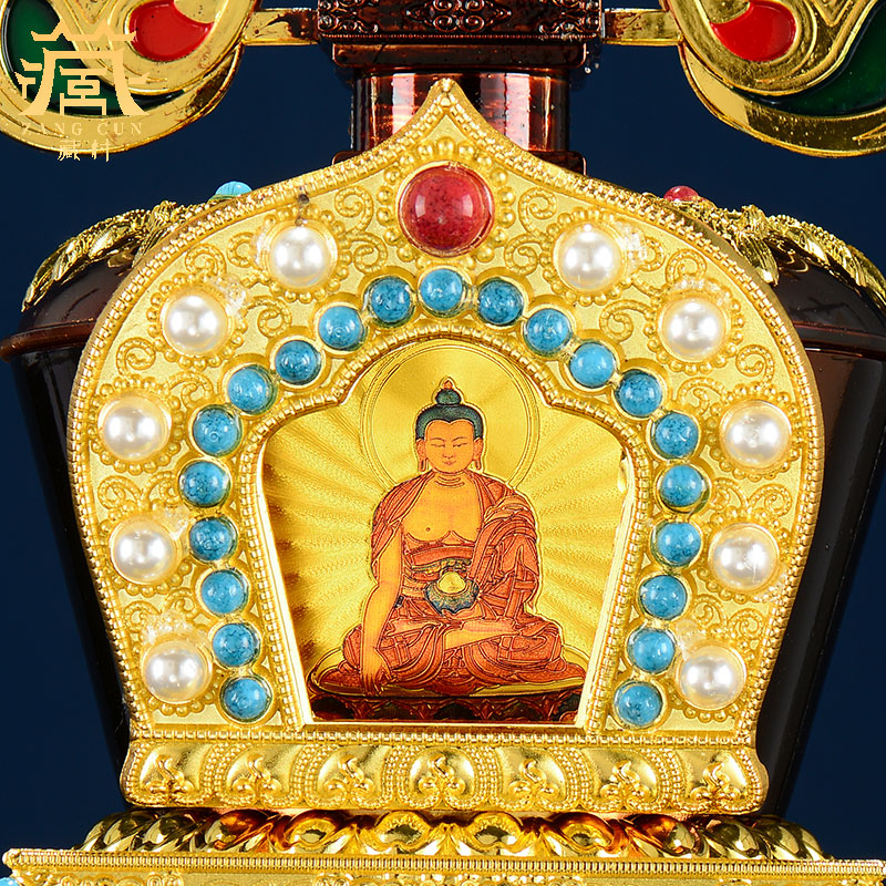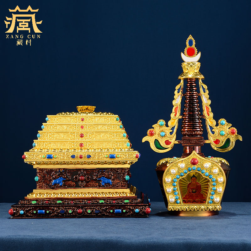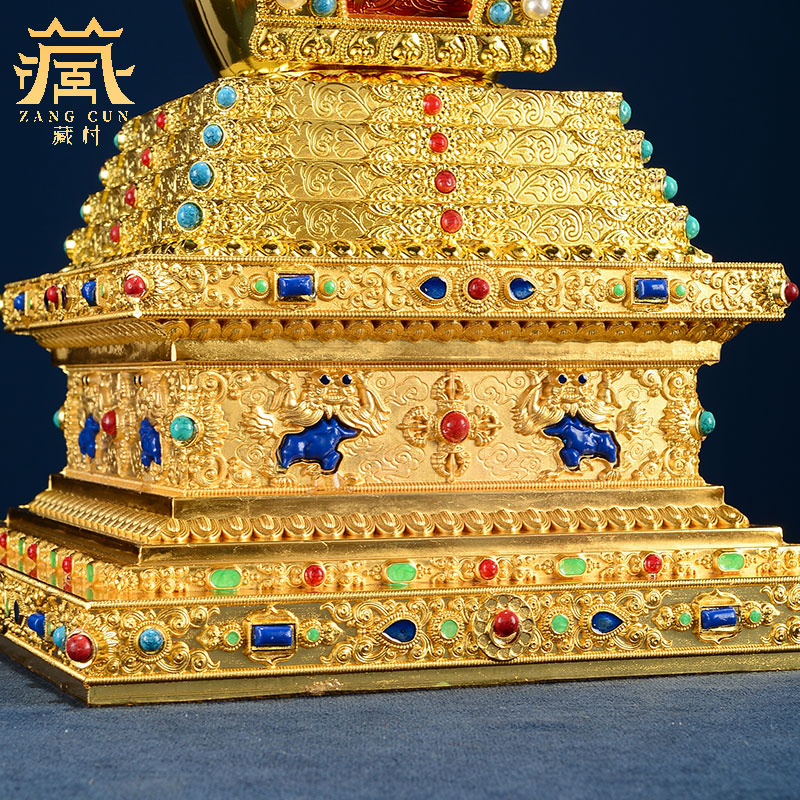 藏村舍利塔家用佛塔菩提塔噶当塔鎏金雕花镶嵌彩珠宝塔嘎乌盒摆件
