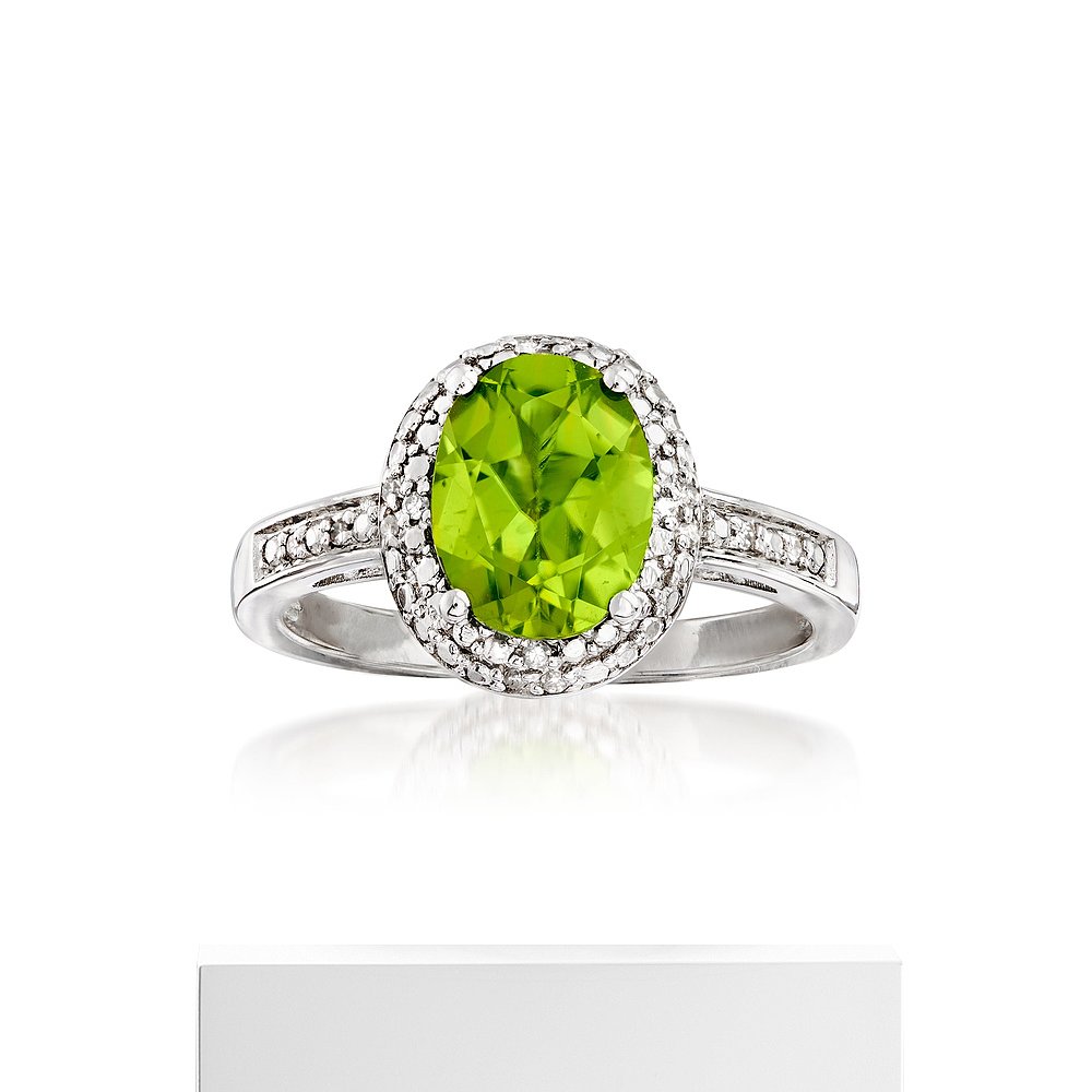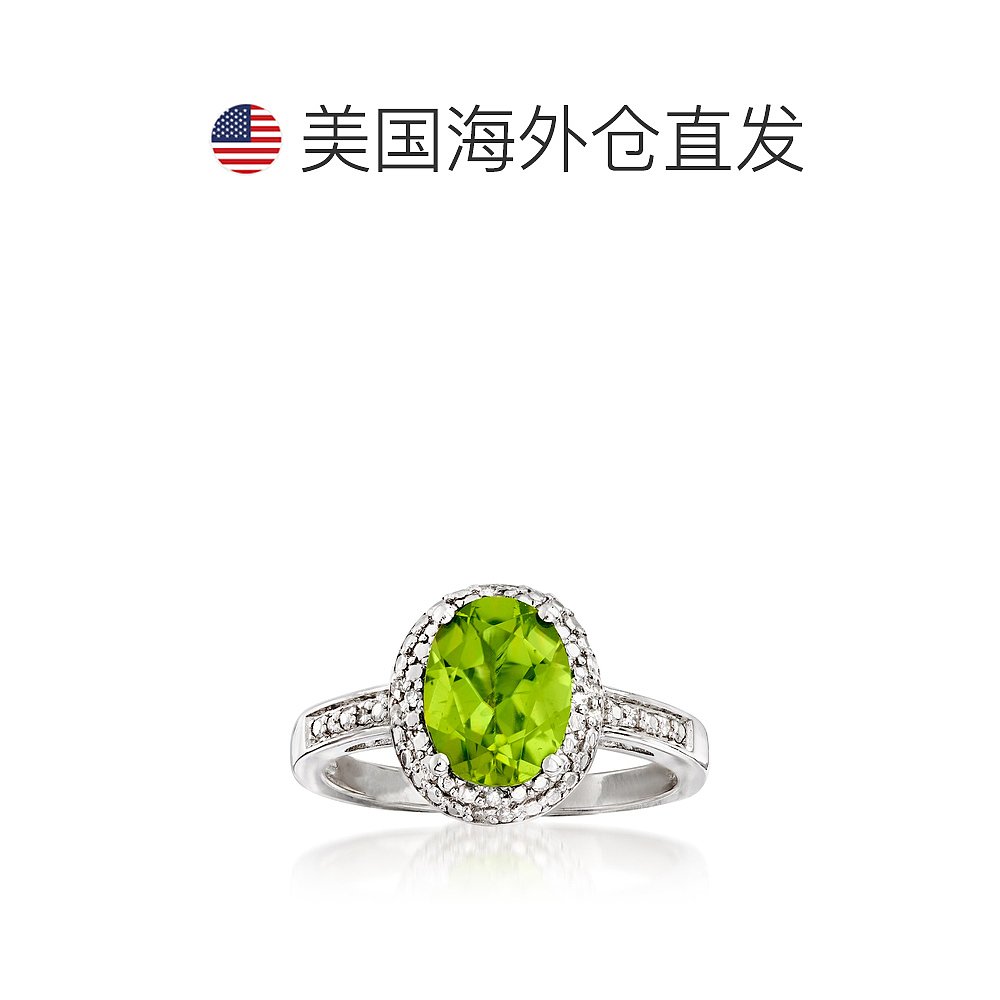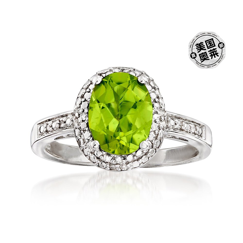 自营 925 纯银 Ross-Simons 橄榄石和钻石重音戒指 绿色 美国奥莱