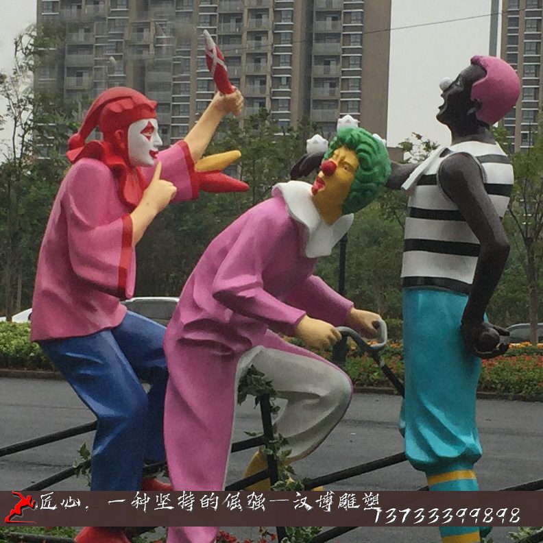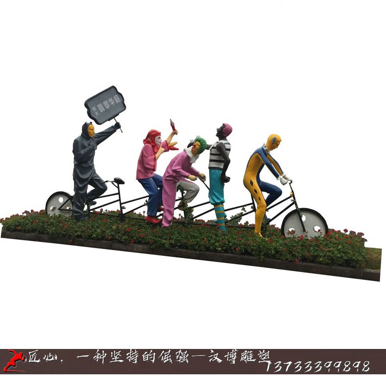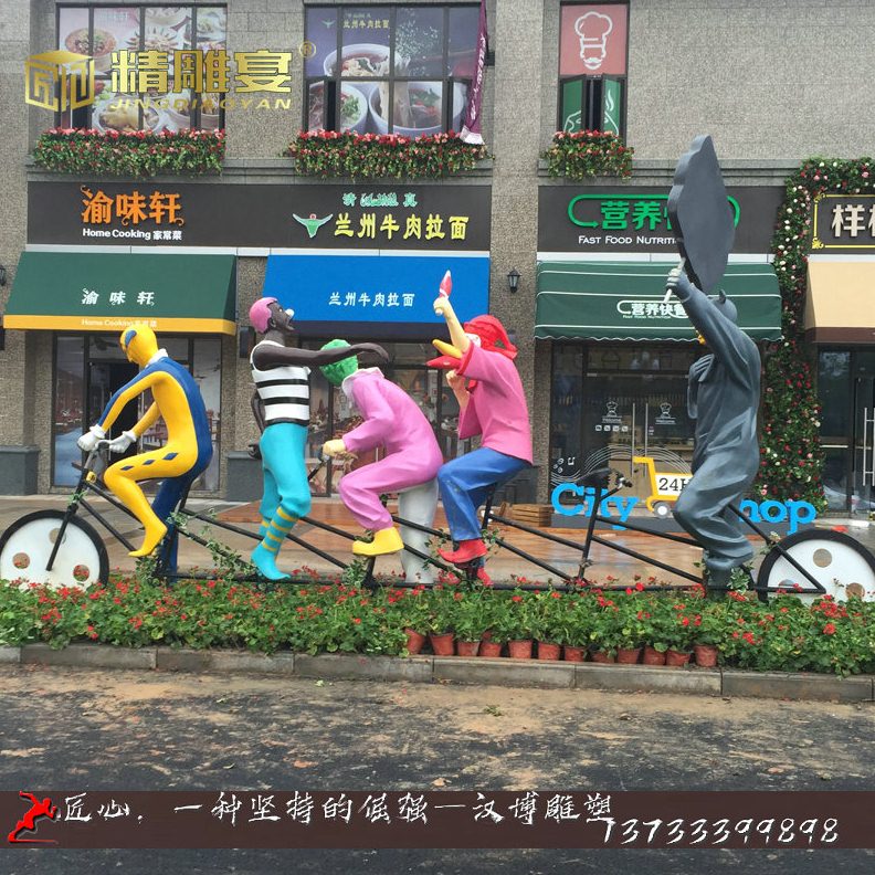 街绘步自行车雕塑人物表彩小丑演马戏团行玻璃钢城市创意摆件骑
