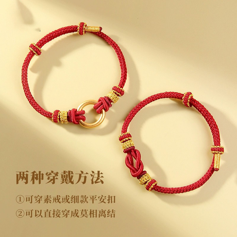 龙年红绳diy儿童手工编织手绳情侣手链女男可串黄金转运珠平安扣