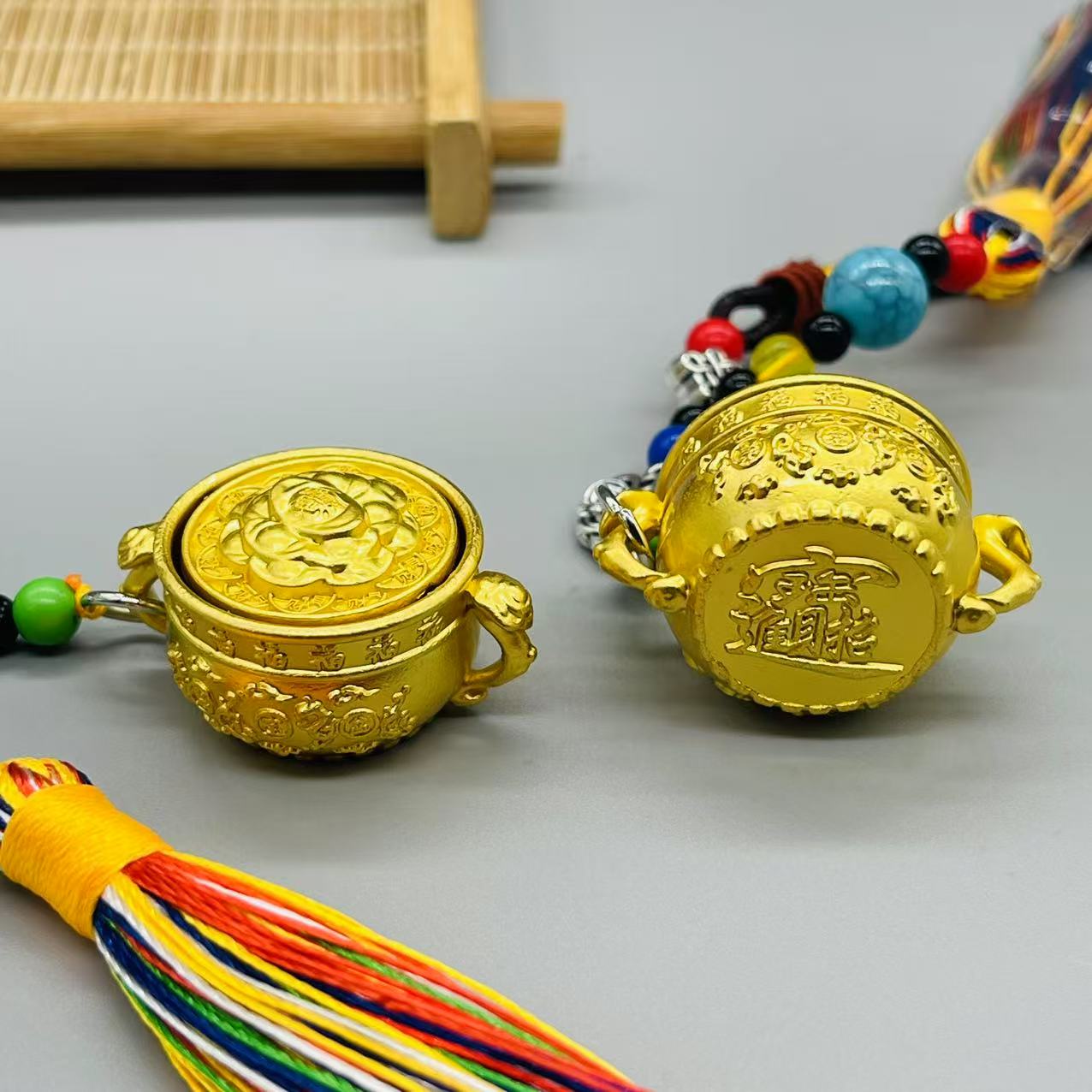 聚宝盆仿铜合金钥匙扣吊坠手把挂件汽车挂坠包挂饰品可转礼品男女