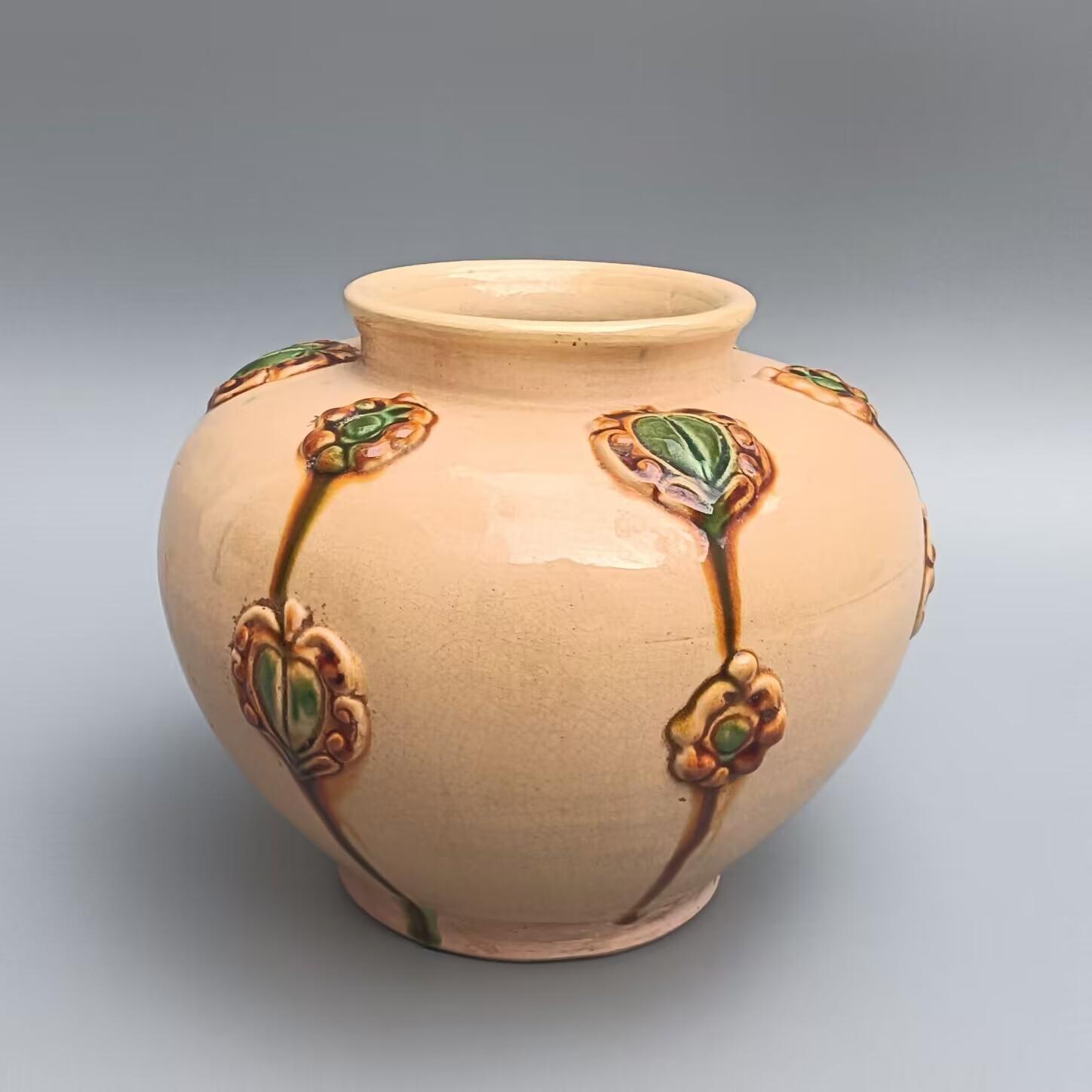 仿古陶器三彩雕花罐摆件宾馆酒店家居饰品瓷器艺术品影视道具古典