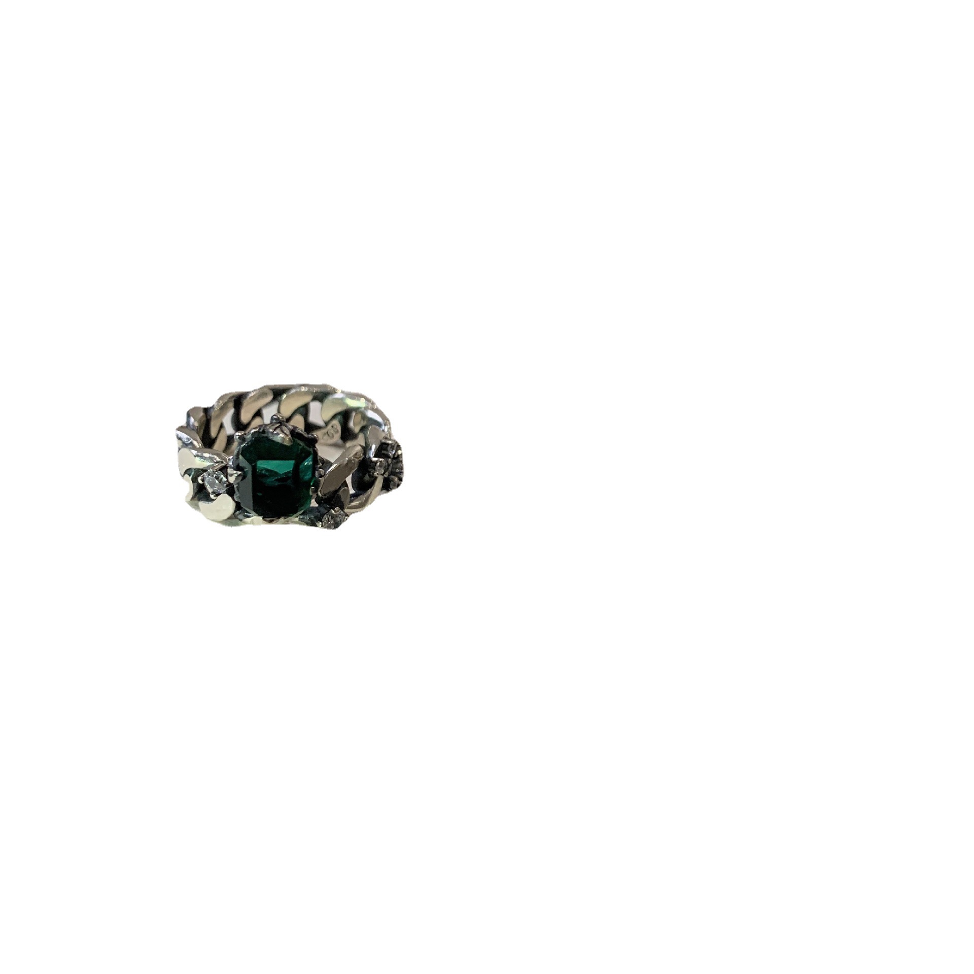 欧美风时尚复古绿色开口戒指女925镀银ins日韩高级感小众食指环潮