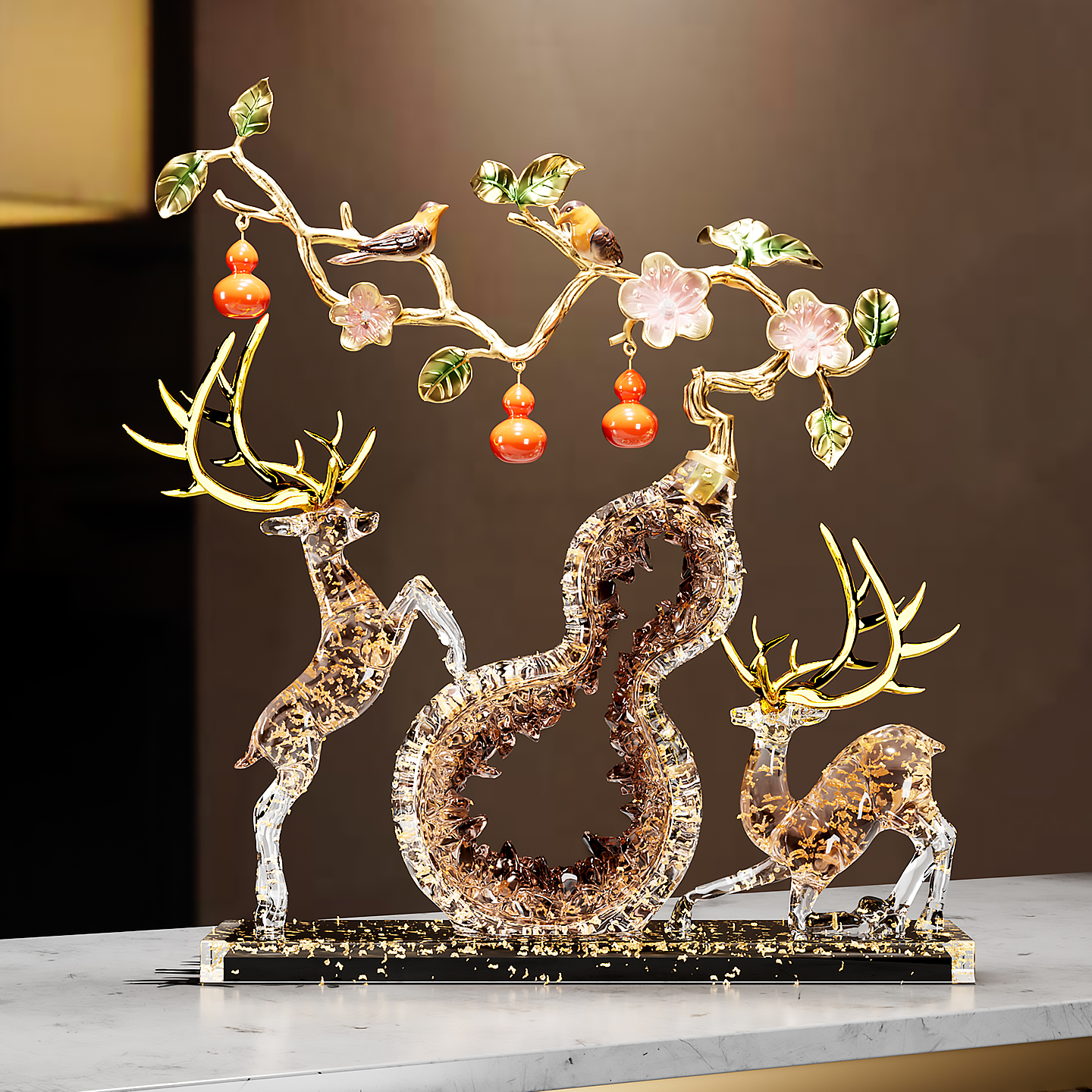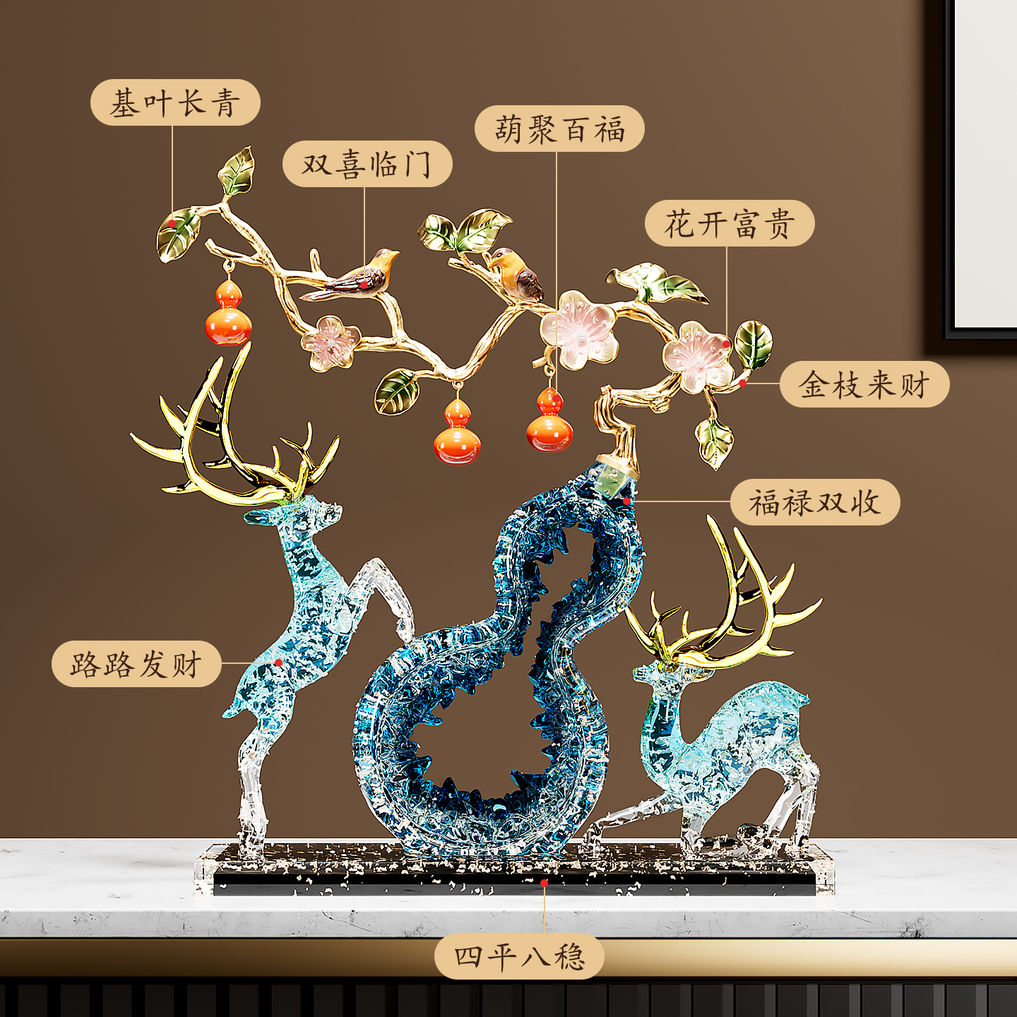 新中式招财鹿葫芦摆件高级感客厅玄关电视柜酒柜装饰乔迁新居礼物