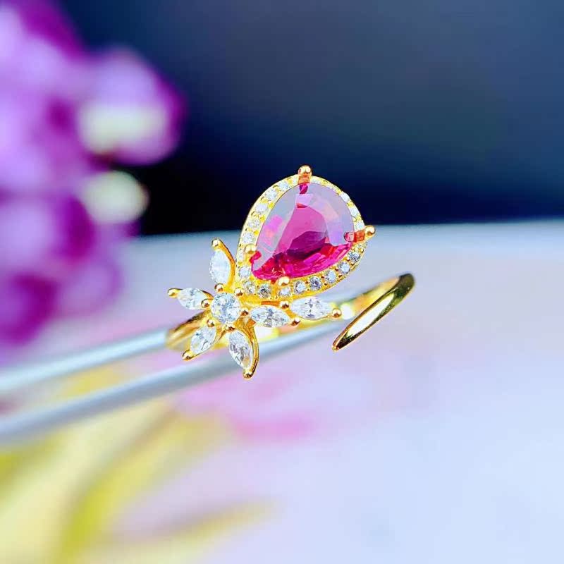 新S925纯银水滴戒指指环银空托尺寸6*8mm时尚网红奢华百搭diy精工