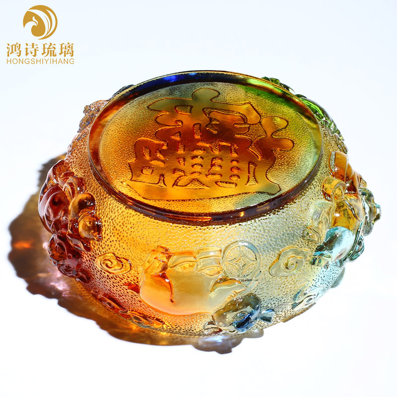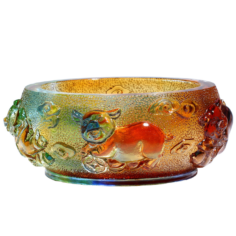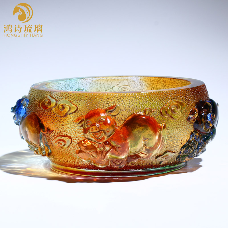 玄关钥匙收纳琉璃聚宝盆猪摆件客厅中式搬新家吉祥物乔迁创意礼品