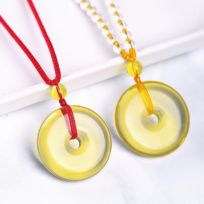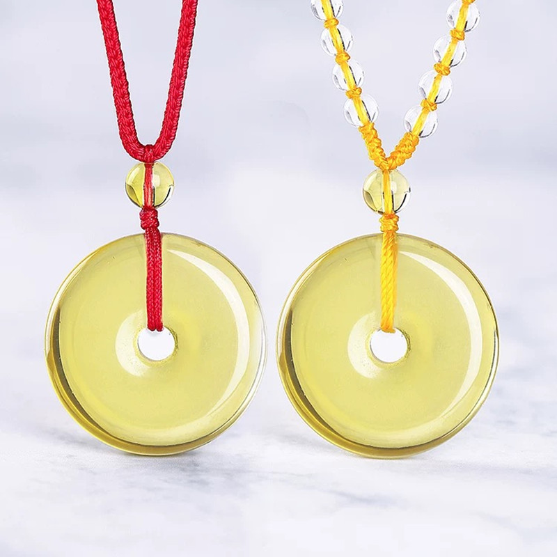 天然黄水晶平安扣吊坠男女款水晶平安扣项链招财转运玉坠挂件礼物
