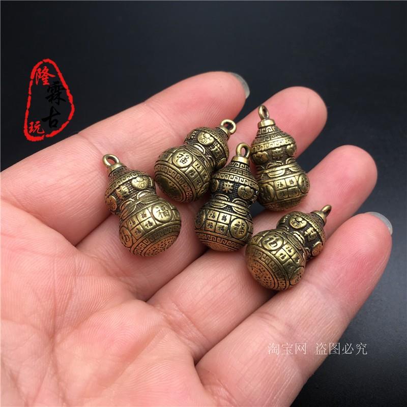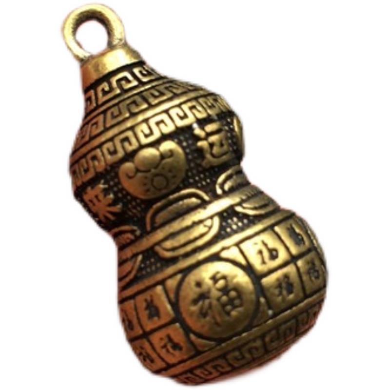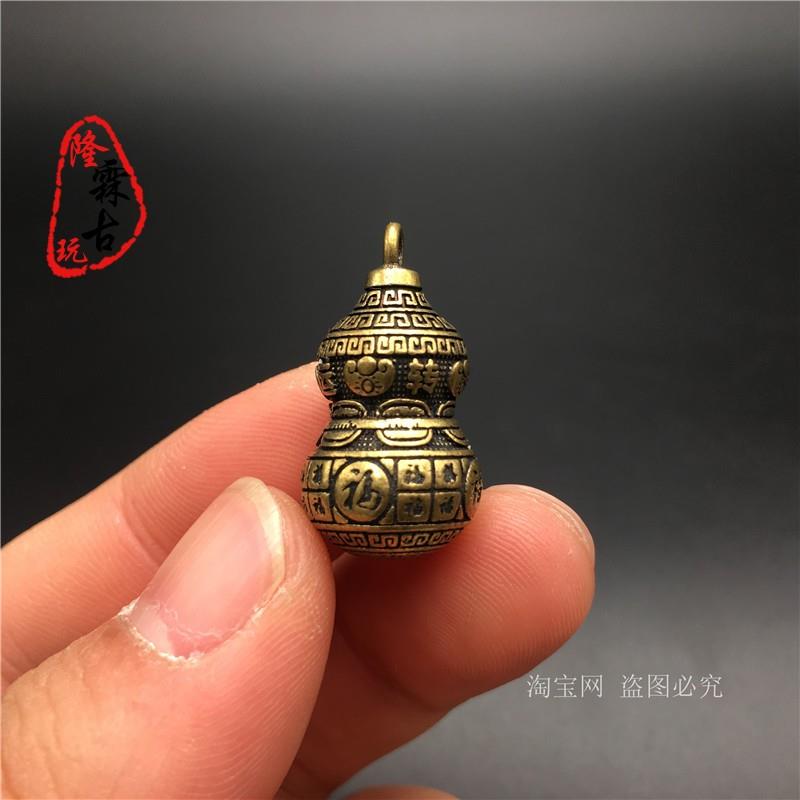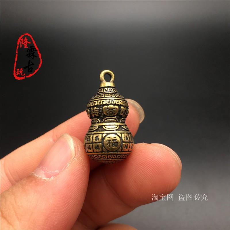 铜葫芦挂件纯实心黄铜微雕时来运转福字钥匙扣铜吊坠小铜器铜雕件