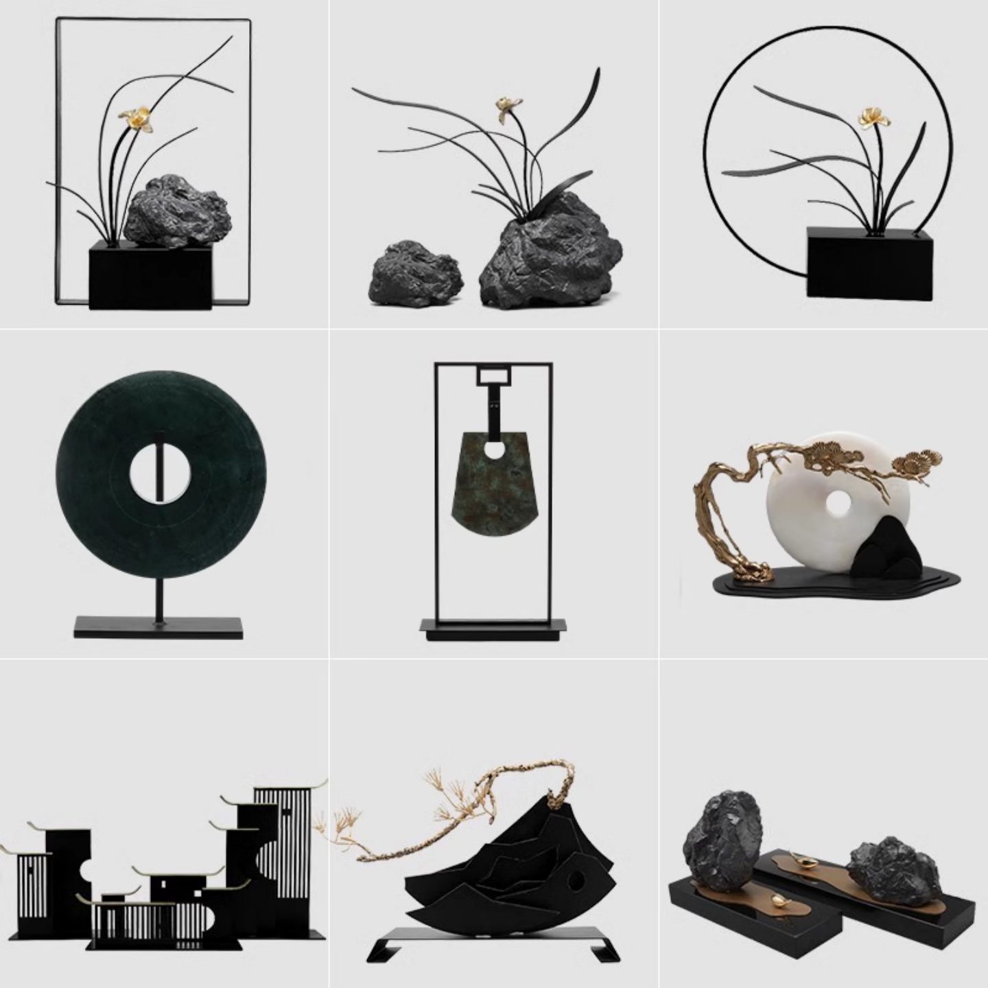 新中式摆件创意铁艺家居客厅酒柜玄关电视柜办公室禅意招财装饰品
