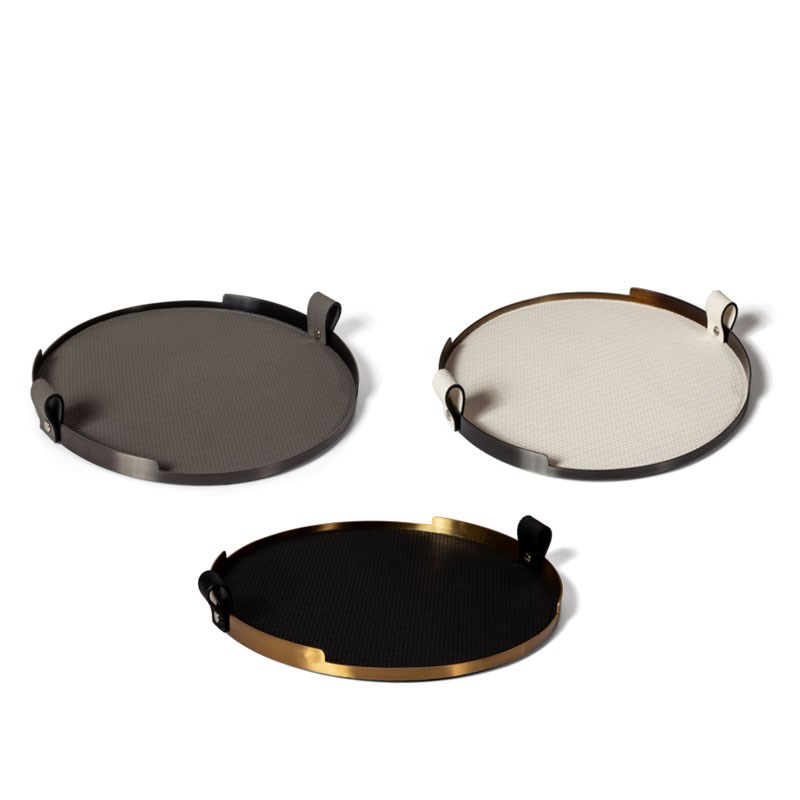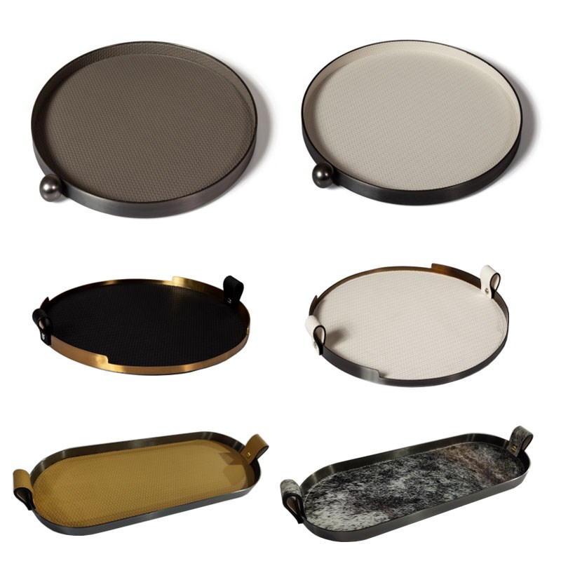 现代简约马毛皮革编m织纹圆形椭圆托盘客厅茶几收纳摆件样板间装