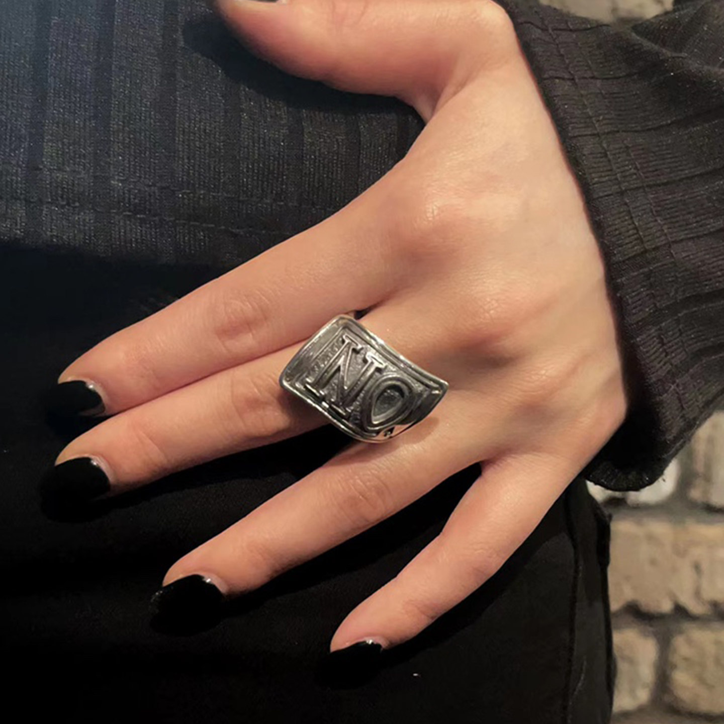 高级感925纯银扑克OK戒指男女食指黑桃字母NO卷草纹开口个性复古