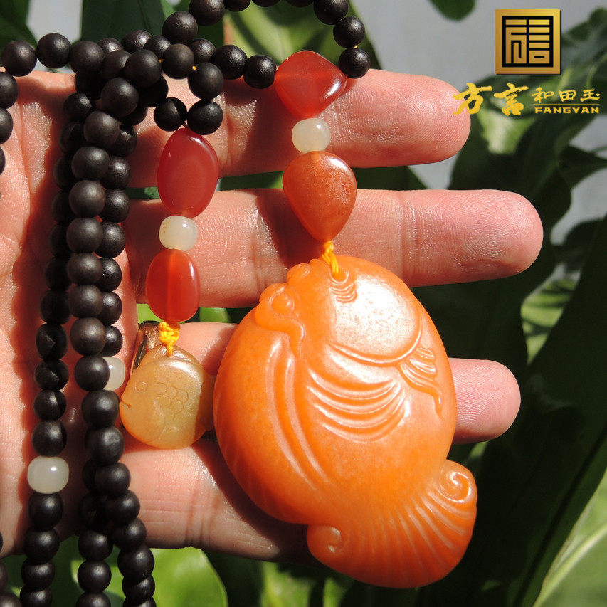 欣赏已结缘传家宝金橘黄色原生黄玉双面留皮籽料精品种鱼大吊坠R