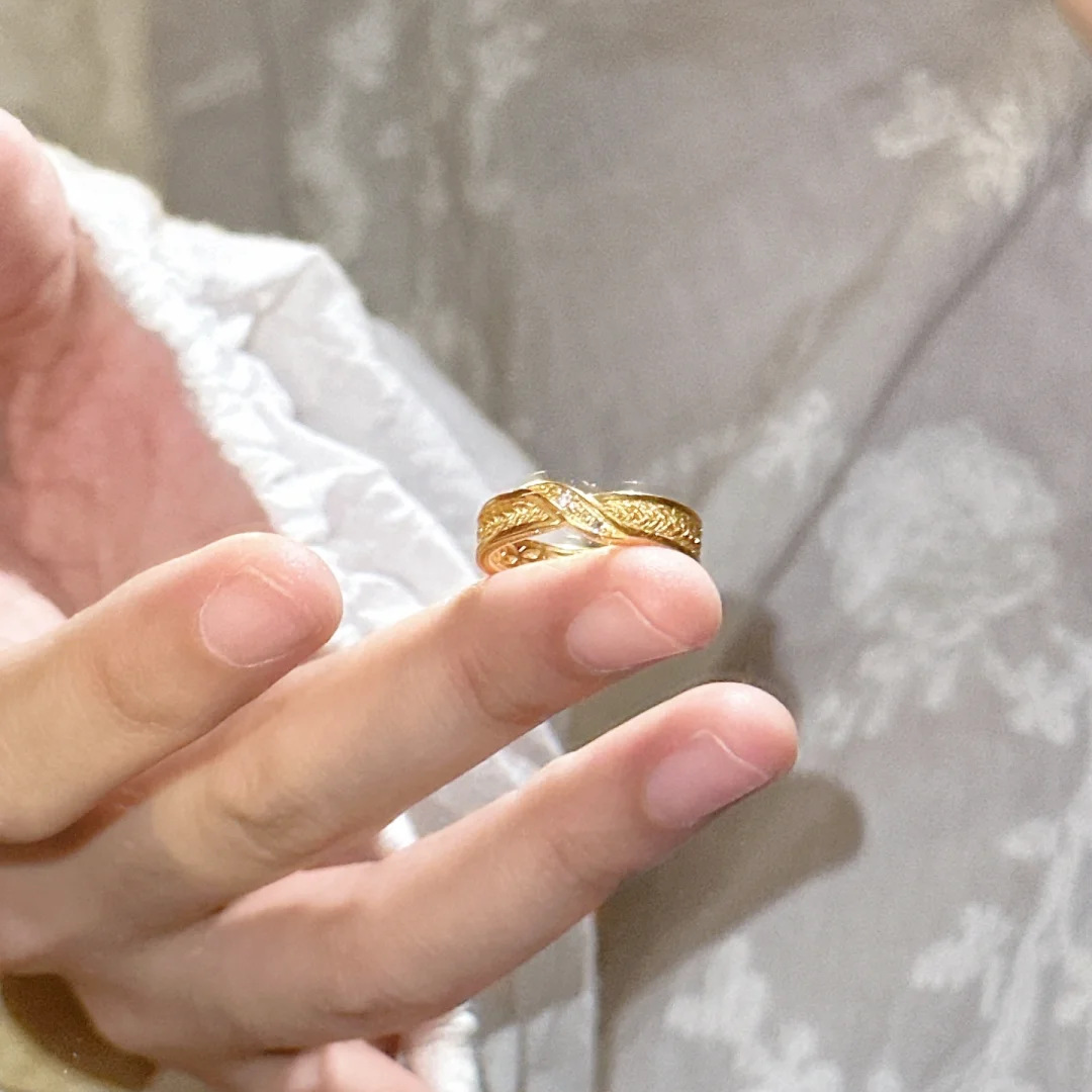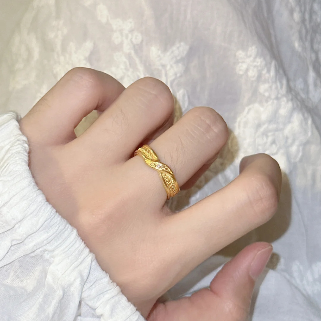 新中式缎带麦穗镶钻戒指女小众简约轻奢百搭气质高级感镀金指环女