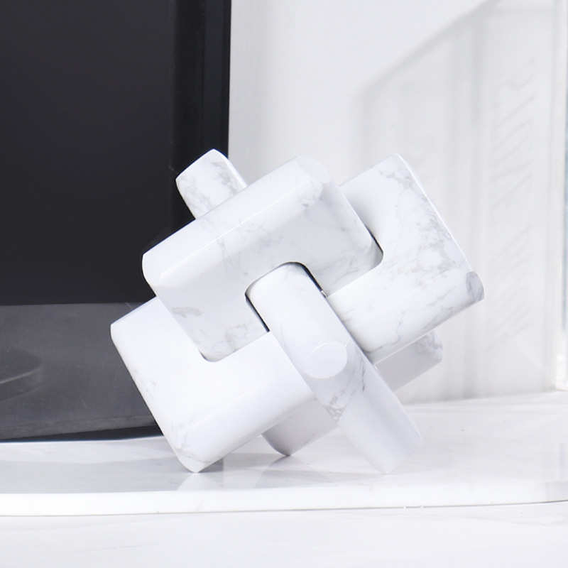 样板房酒店民宿客厅电视柜茶几桌面软装饰品摆件黄洞石几何装饰品