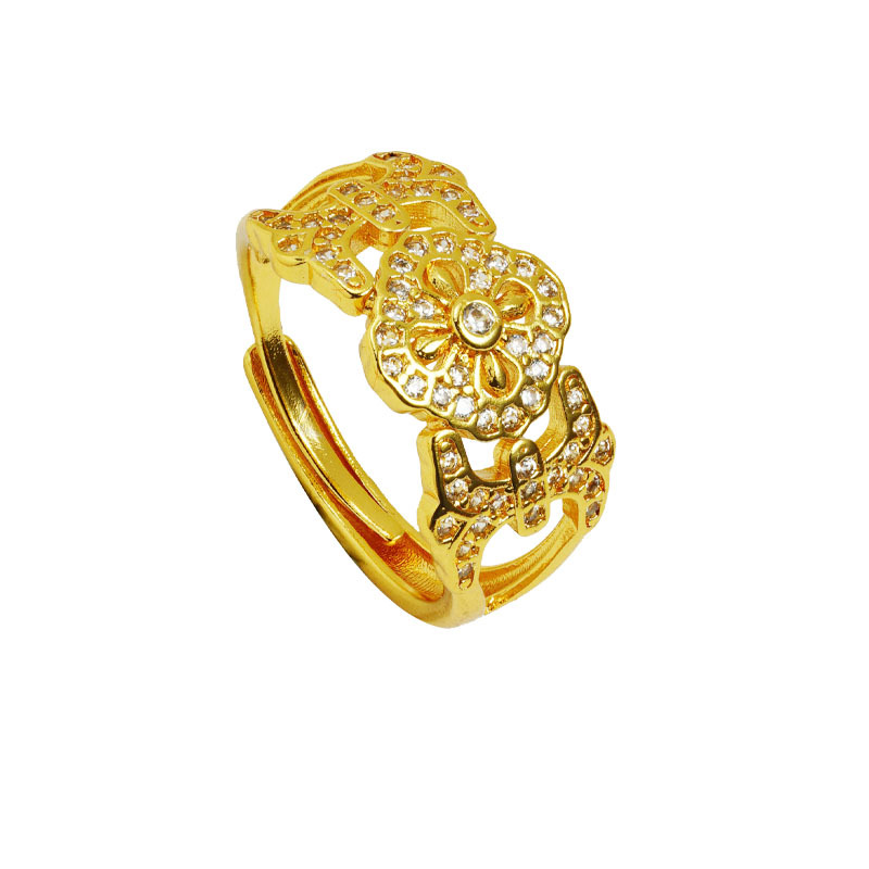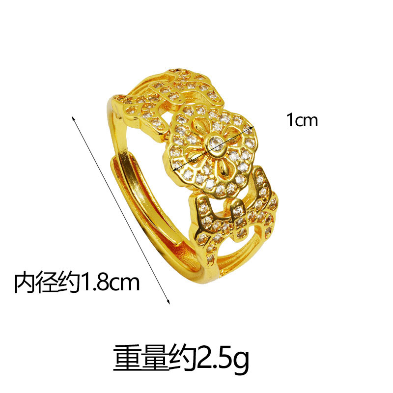 爆款古法沙金指环国潮设计感花丝镶钻开口戒指女气质久不掉色饰品