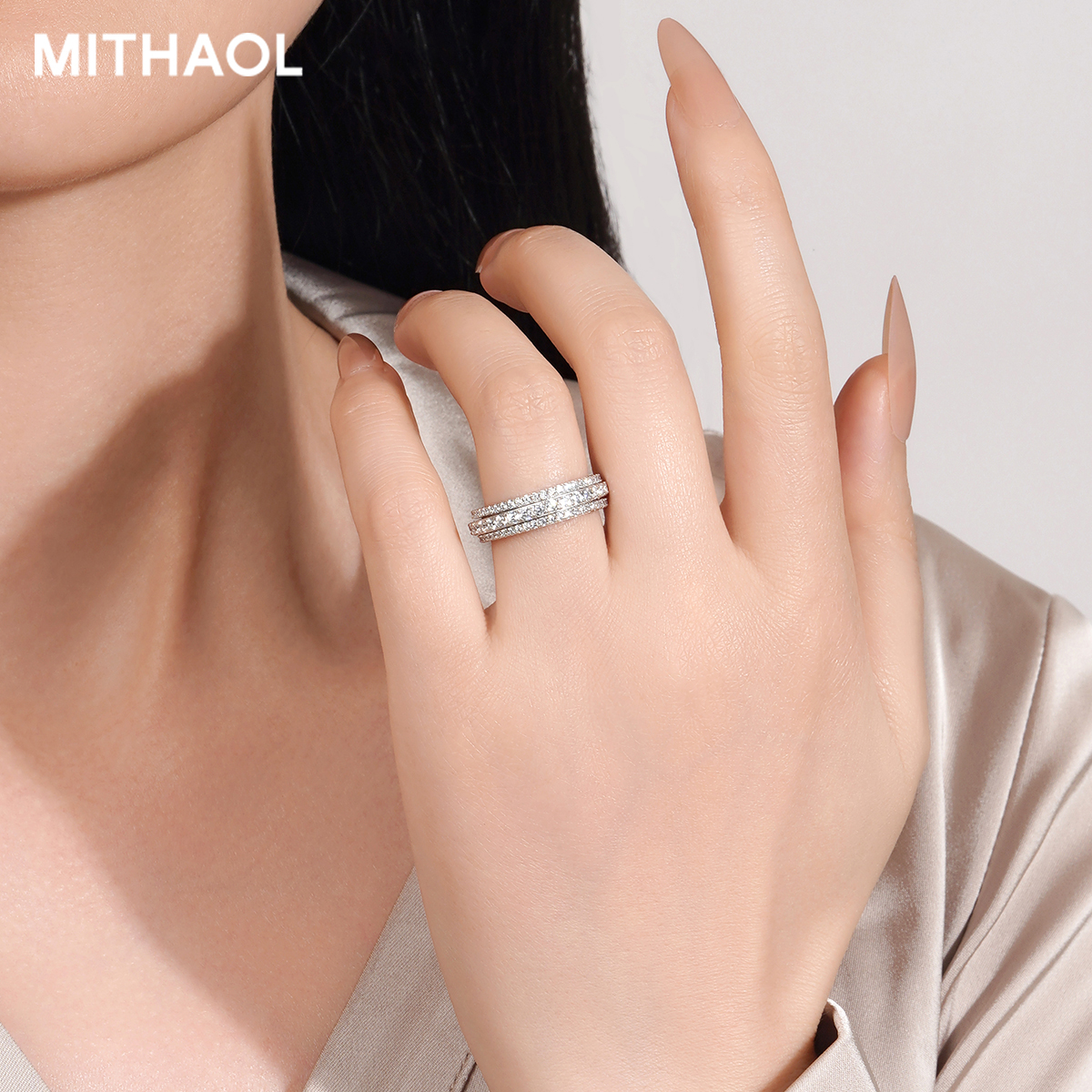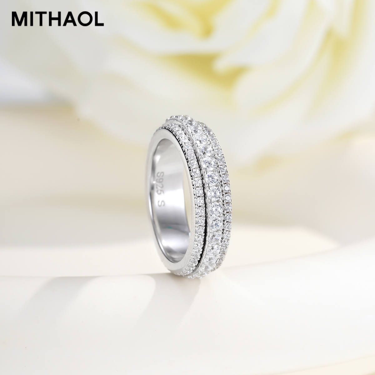MITHAOL时来运转戒指女轻奢小众高级感满钻转运指环女款银镀18K金