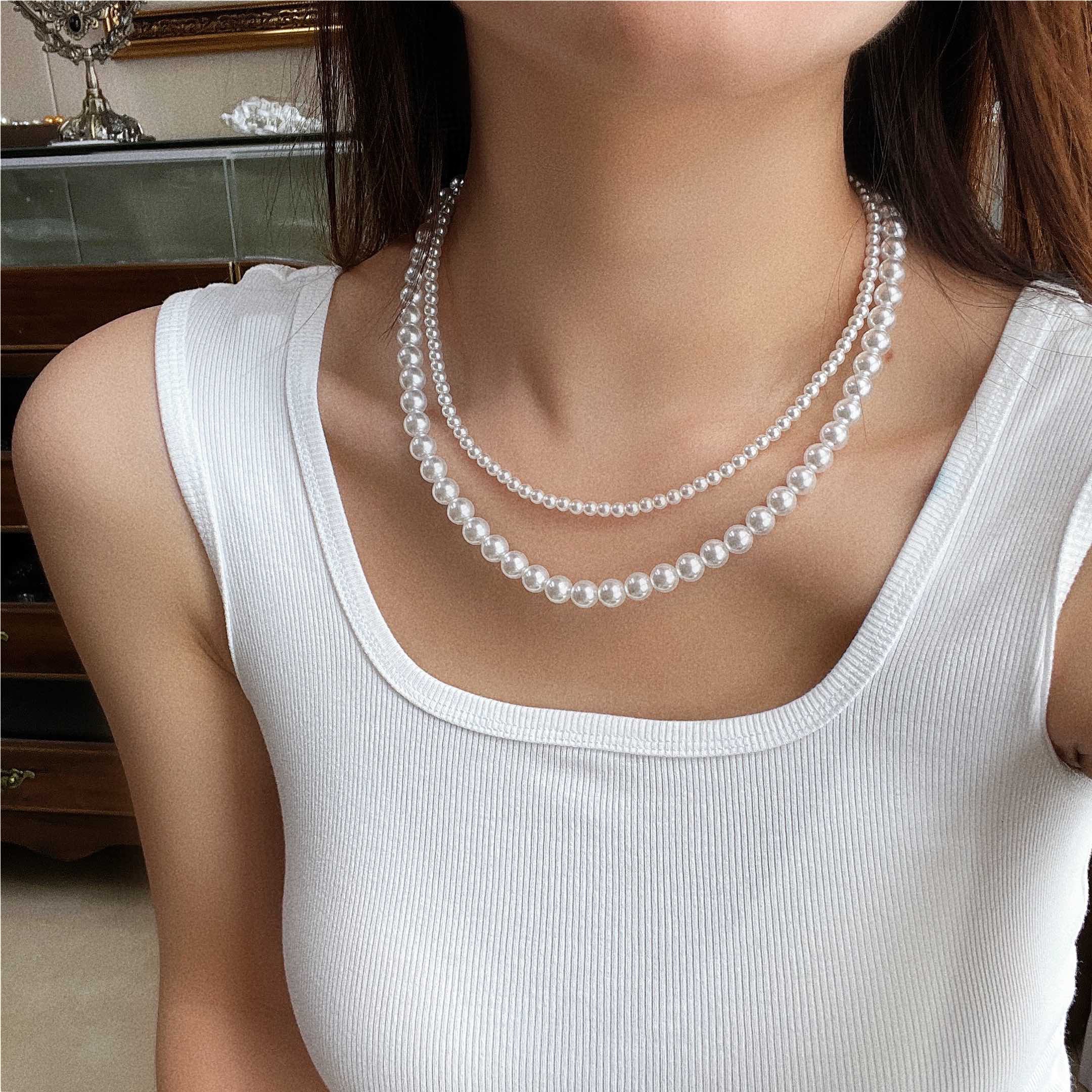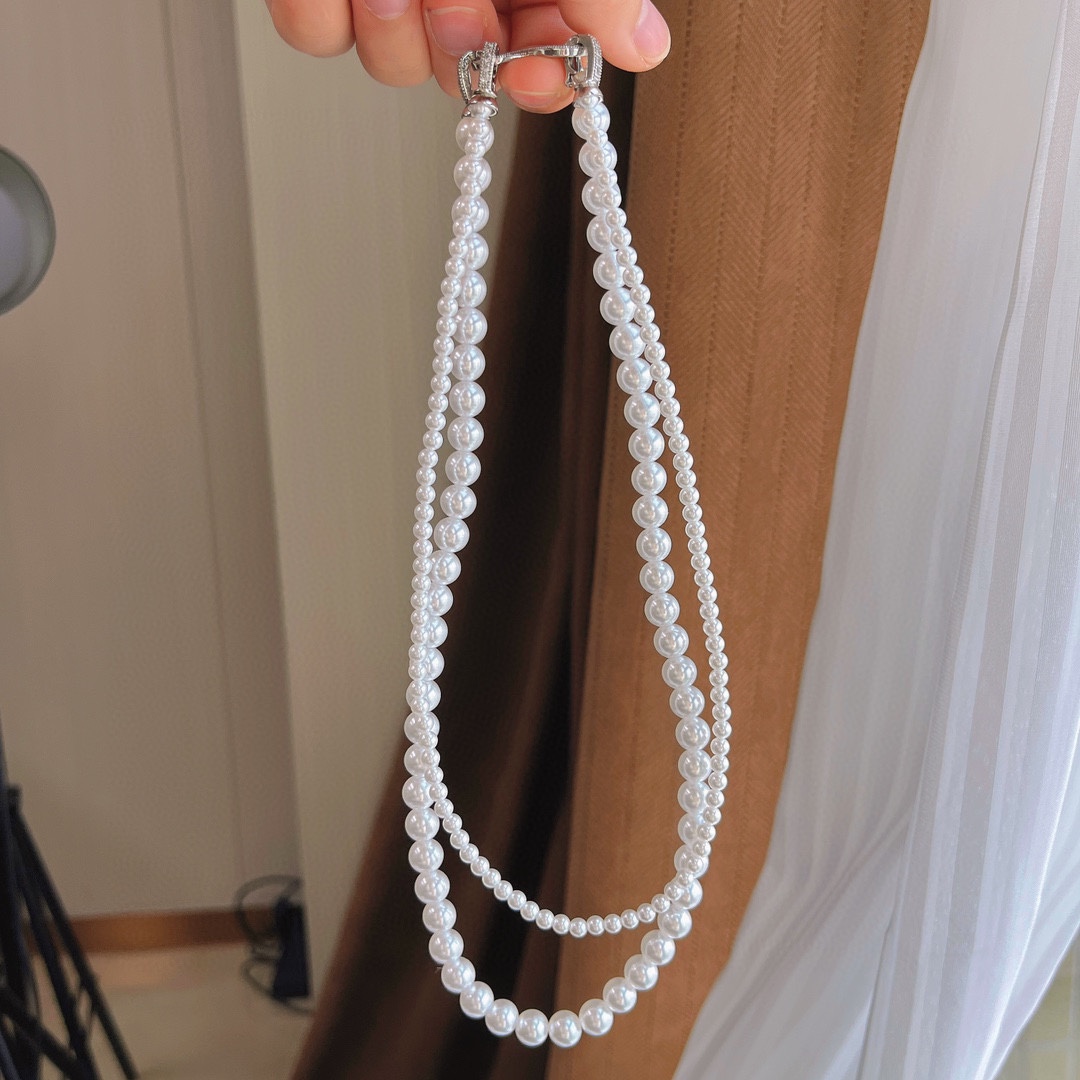 精品双层施家珍珠毛衣链叠戴一条多戴长款项链百搭8字扣4mm8mm