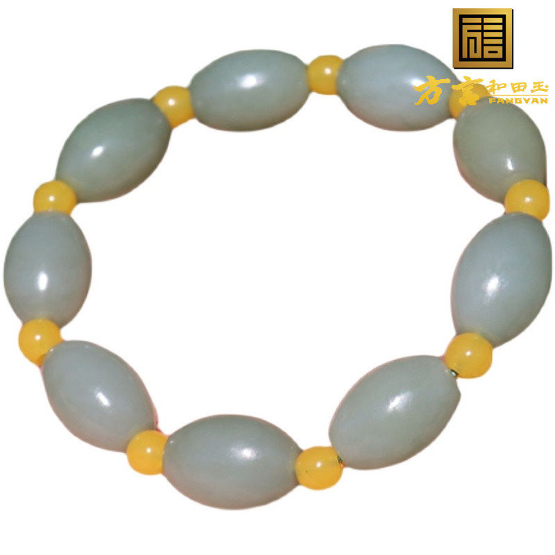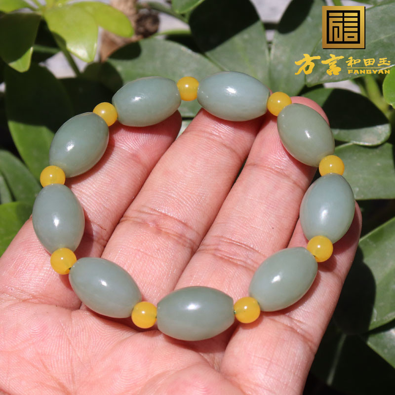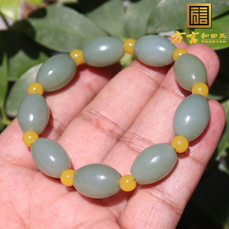 火爆方言和田玉新疆且末罕见珍稀名品蓝色基调桶珠豪华大气手链N