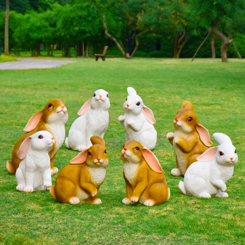 户外园林小品雕塑仿真动物摆件兔子树脂工艺品花园庭院小白兔装饰
