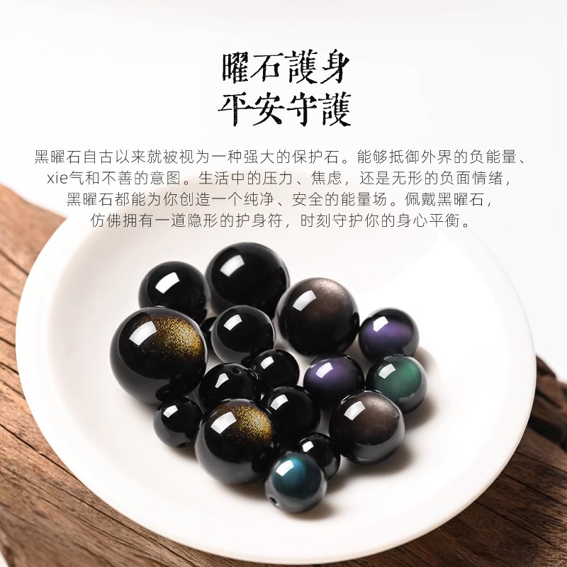 圣岚(饰品)银曜石散珠金曜石diy手工黑曜石配件串珠配珠材料