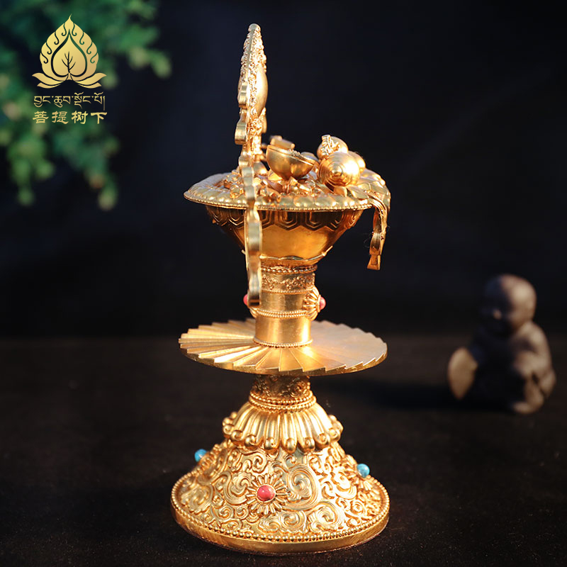 铜五妙欲居家供具用品五妙欲藏式家居供桌五妙欲集合摆件高21cm